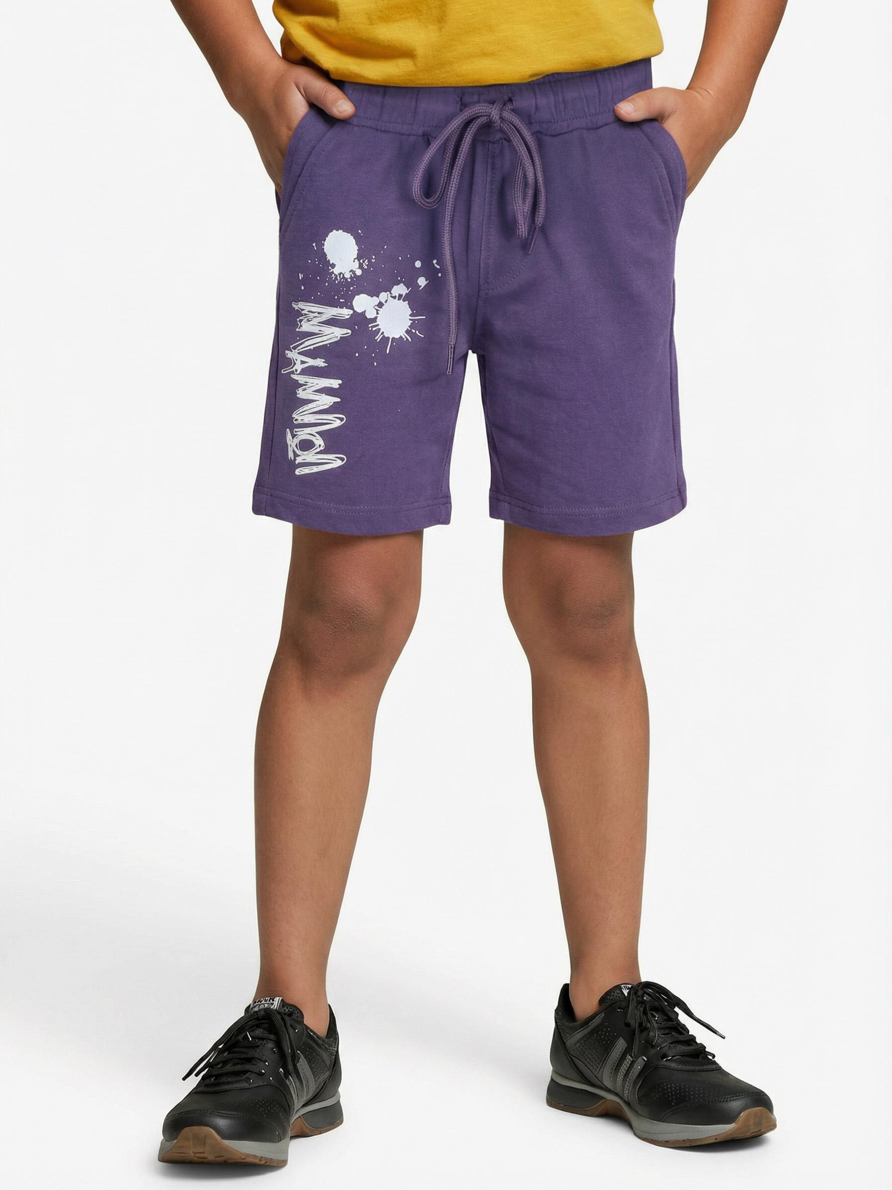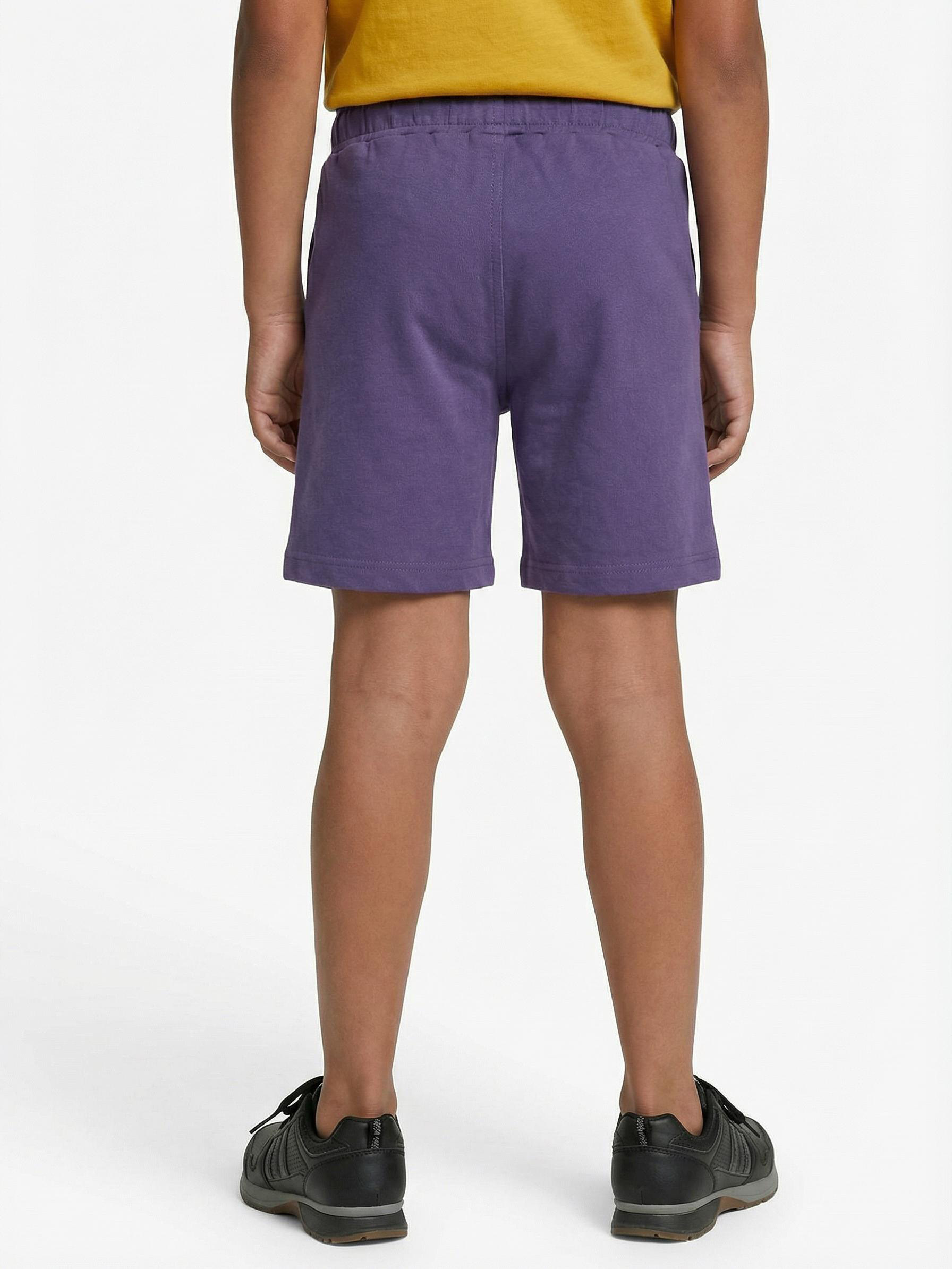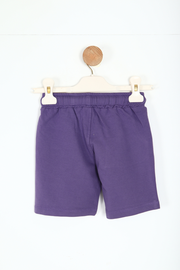 شورت بنفسجي للأطفال من تصميم مريح وأنيق لفصل الصيف. يحتوي على خصر مطاطي مع رباط قابل للتعديل لسهولة التناسب وحرية الحركة. تتميز الجهة الأمامية بطبعة بيضاء تضفي لمسة رياضية وحيوية، كما يحتوي على جيوب جانبية عملية. مصنوع من قماش قطني ناعم يوفر الراحة والتهوية خلال الأيام الحارة مع طول متوسط.