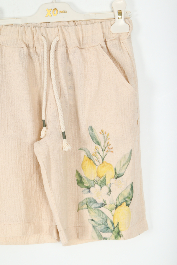 هذه الشورتات الأولاد هي الخيار المثالي لأيام الصيف، حيث تقدم مظهرًا مريحًا وأنيقًا. لونها البيج ونقوش الليمون الأنيقة تجذب الانتباه. مع حزام خصر مرن وميزة حبل السحب، توفر الراحة والقابلية للتعديل.