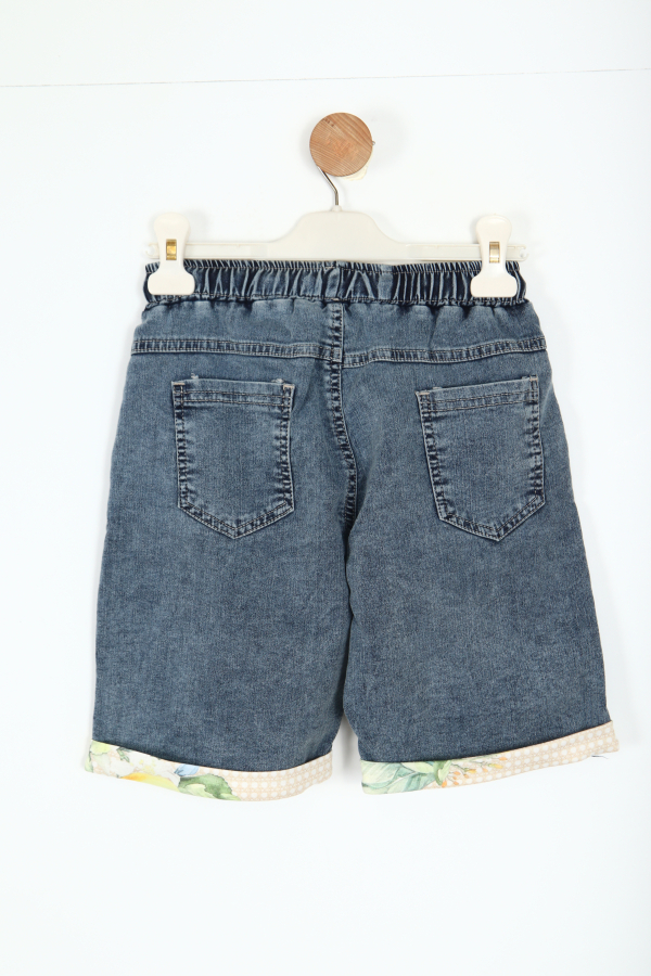 Çocuklarınızın yaz günlerinde rahatça hareket edebilmesi için tasarlanmış bu şort, şık ve kullanışlı bir seçenektir. Elastik bel bandı ve bağcıklı tasarımı ile kolayca giyilip çıkarılabilir. Çiçek desenli dikiş detayları, şortun alt kısmına zarif bir dokunuş katmaktadır.