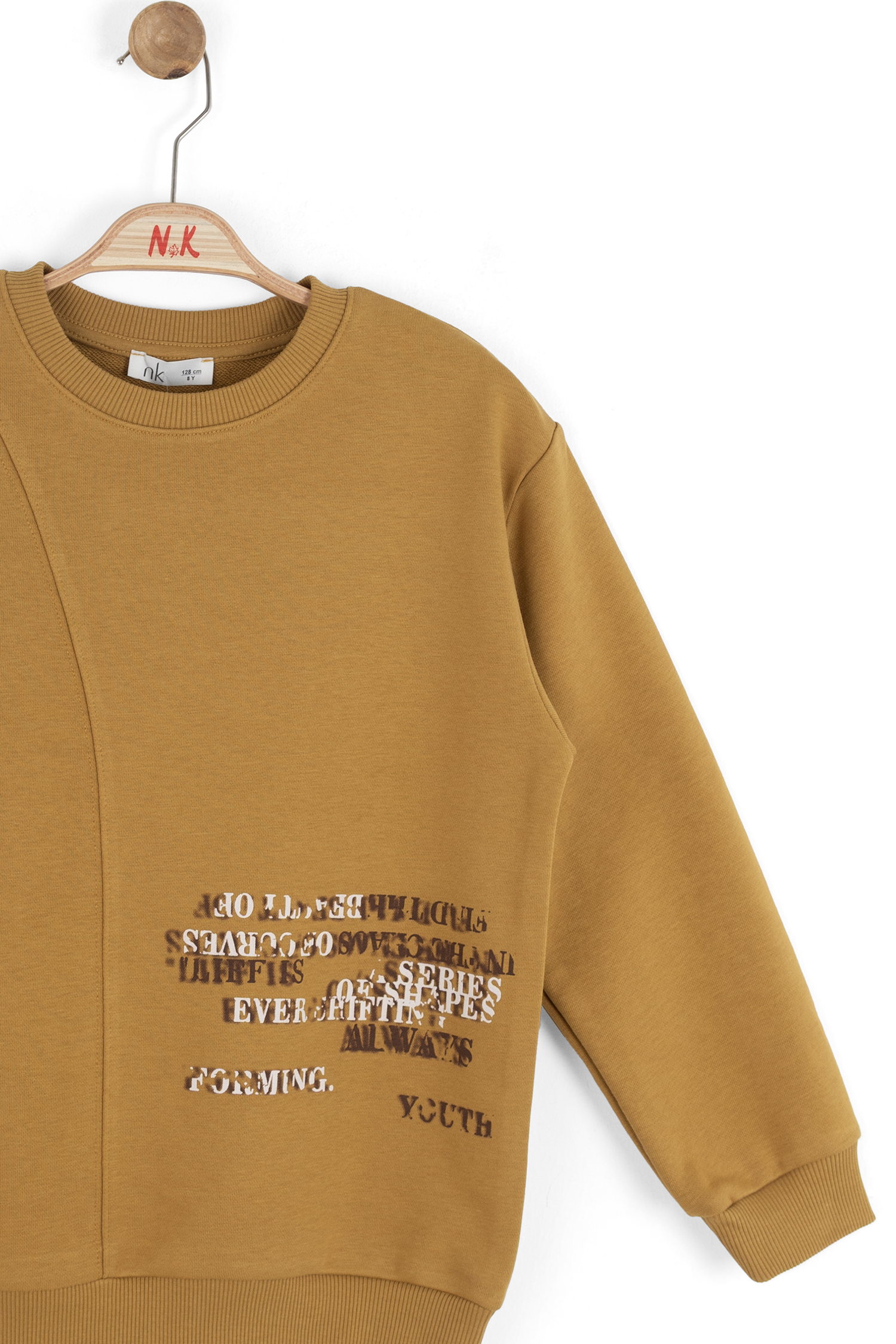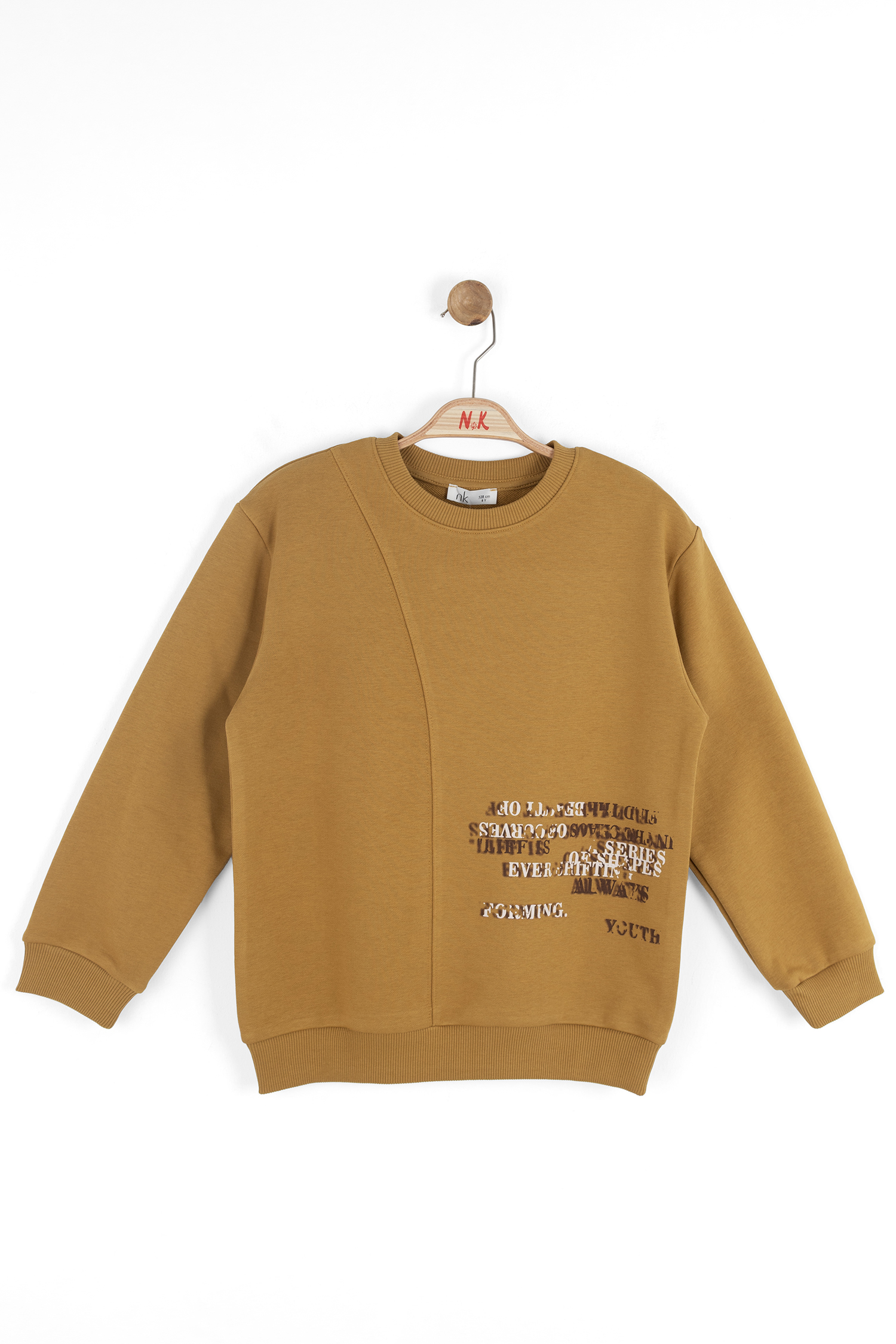 هذا السويتشيرت الأولاد يقدم تصميمًا مريحًا وأنيقًا مثاليًا للاستخدام اليومي. يتميز بعدم وجود غطاء للرأس وبدون سحاب ليمنح مظهرًا بسيطًا ونظيفًا. بياقة دائرية وأكمام طويلة، يأتي باللون الخردلي الذي يلفت الانتباه. يحتوي على تفصيل درزة غير متماثلة ونص مطبوع صغير في الأمام ليضيف لمسة عصرية. قصته الواسعة وأساوره المطاطية تسمح بحرية الحركة، مما يجعله خيارًا مثاليًا للملابس الكاجوال والرياضية.
