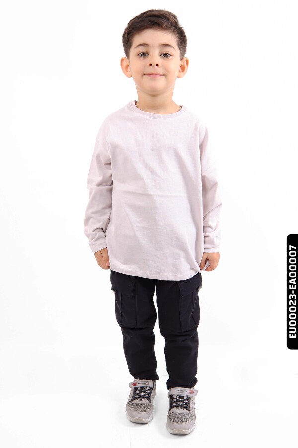 Bu erkek çocuk sweatshirt, sade ve rahat tasarımıyla günlük kullanıma çok uygun. Kapüşonsuz ve fermuarsız olan bu uzun kollu sweatshirt, bisiklet yaka detayına sahip. Gri tonunda ve cepsiz, kordonsuz sade bir modeldir. Yumuşak kumaşı sayesinde çocukların konforunu ön planda tutar ve kış sezonunda kat kat giyimde ideal bir parça olarak öne çıkar.