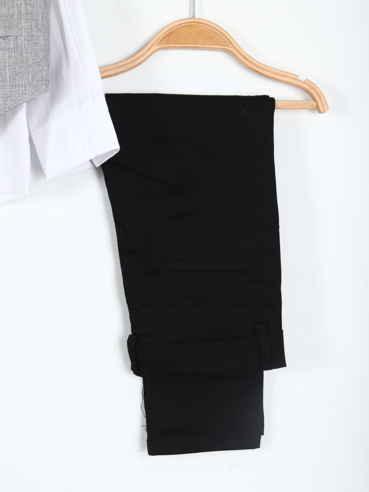 - Siyah, düz kesim pantolon