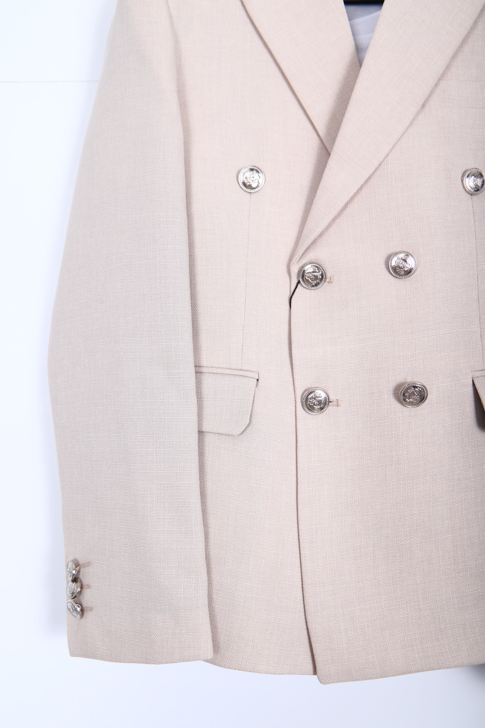 Bu erkek çocuk takım elbise, zarif ve modern bir görünüm sunar. Klasik kesime sahip ceket, çift sıra düğmeli ve düğmeler metalik ve özel tasarımlıdır. Bej tonlarında olan takım, günlük ve özel davetlerde şıklık sağlar. Ceket uzun kollu ve kruvaze yaka detaylıdır. Pantolon ise regular kesim olup, bel kısmında kordon detayı bulunur ve rahat bir kullanım sunar. Takım, hem şık hem de rahat bir stil arayan çocuklar için ideal bir seçimdir.