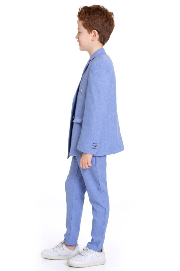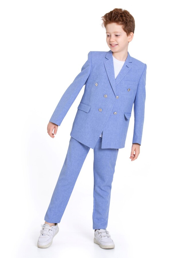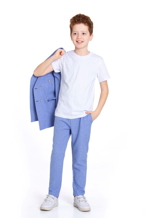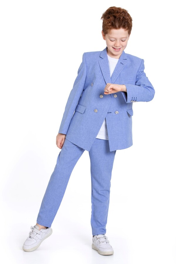 بدلة الأولاد الأنيقة هذه مثالية للمناسبات الخاصة أو الحفلات، حيث تقدم مظهرًا عصريًا. متوفرة بلون أزرق ناعم، وهي خيار رائع للطقس الدافئ.