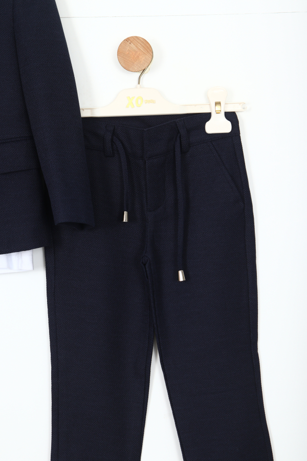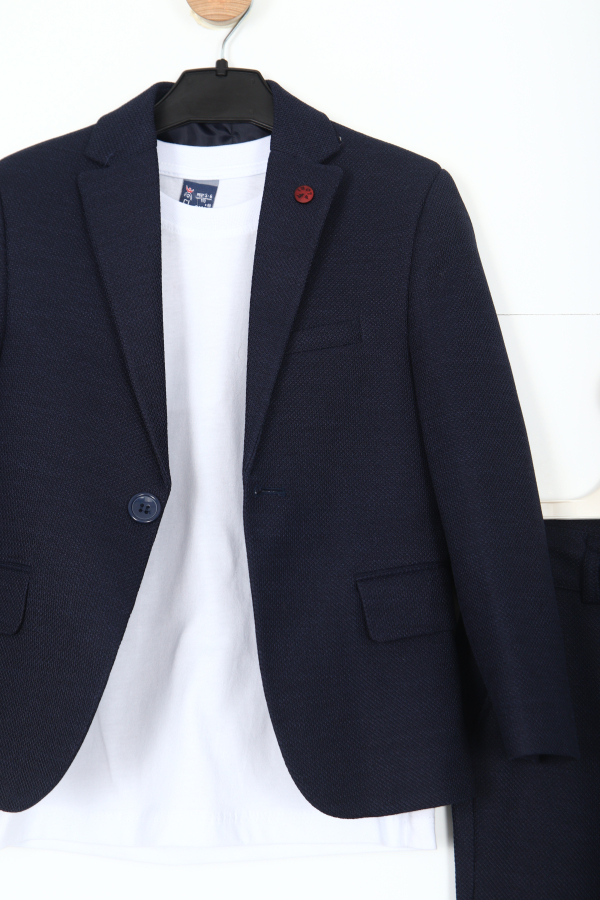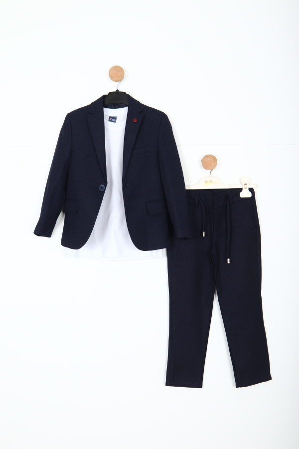 بدلة الأولاد الأنيقة هذه خيار مثالي لأي مناسبة خاصة. تصميمها العصري وقماشها عالي الجودة يبرز. تتكون البدلة من سترة مزودة بأزرار في الأعلى وسروال مريح في الأسفل.