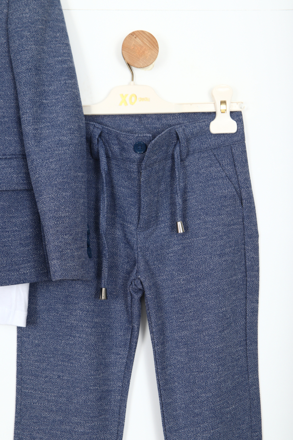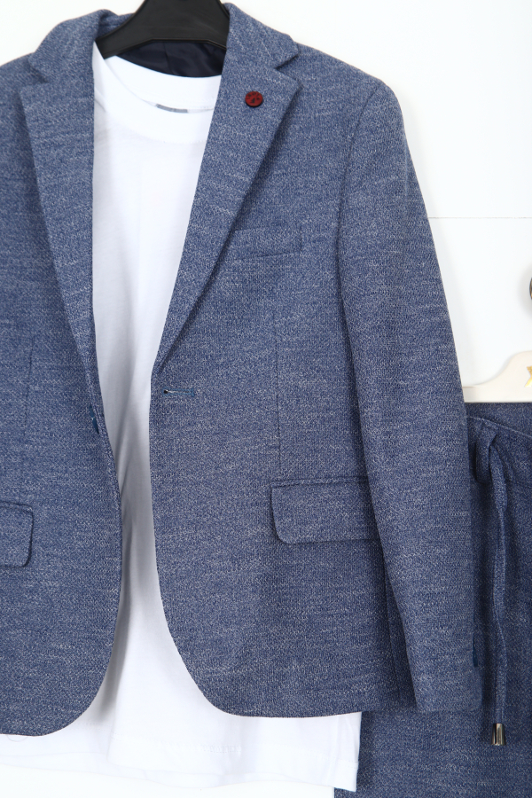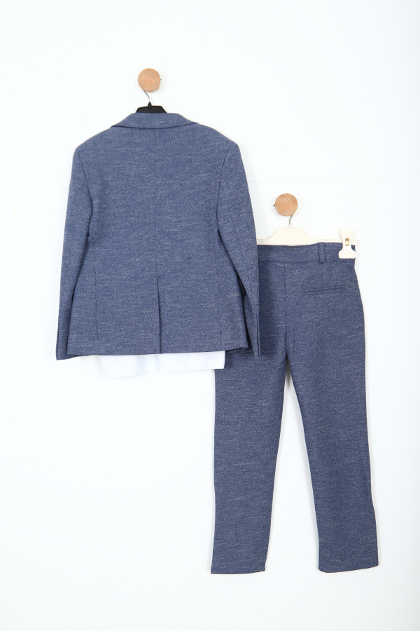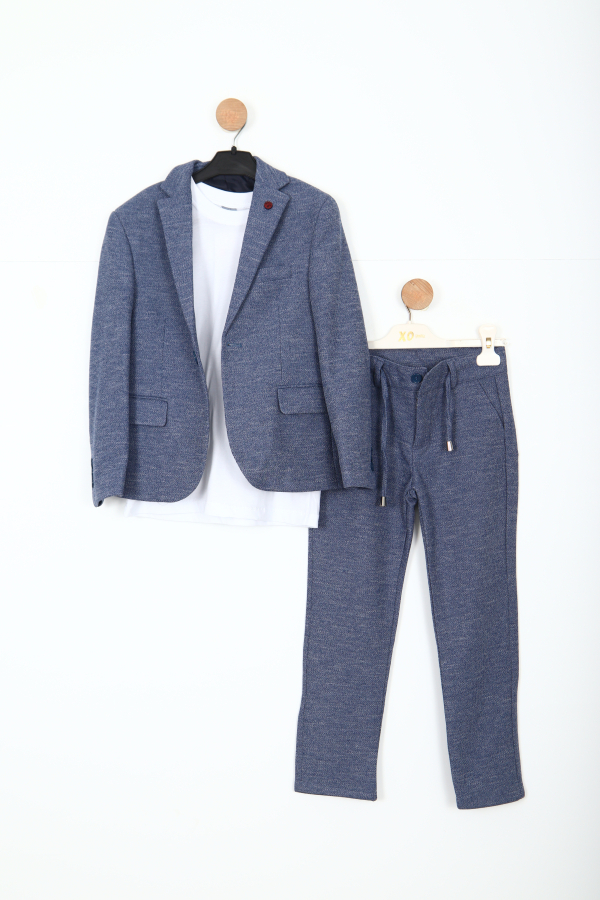 Bu şık erkek çocuk takım elbisesi, her özel gün için mükemmel bir tercihtir. Modern tasarımı ve kaliteli dokusu ile dikkat çeker. Üst kısmında düğmeli ceket ve alt kısmında konforlu bir pantolon bulunmaktadır.