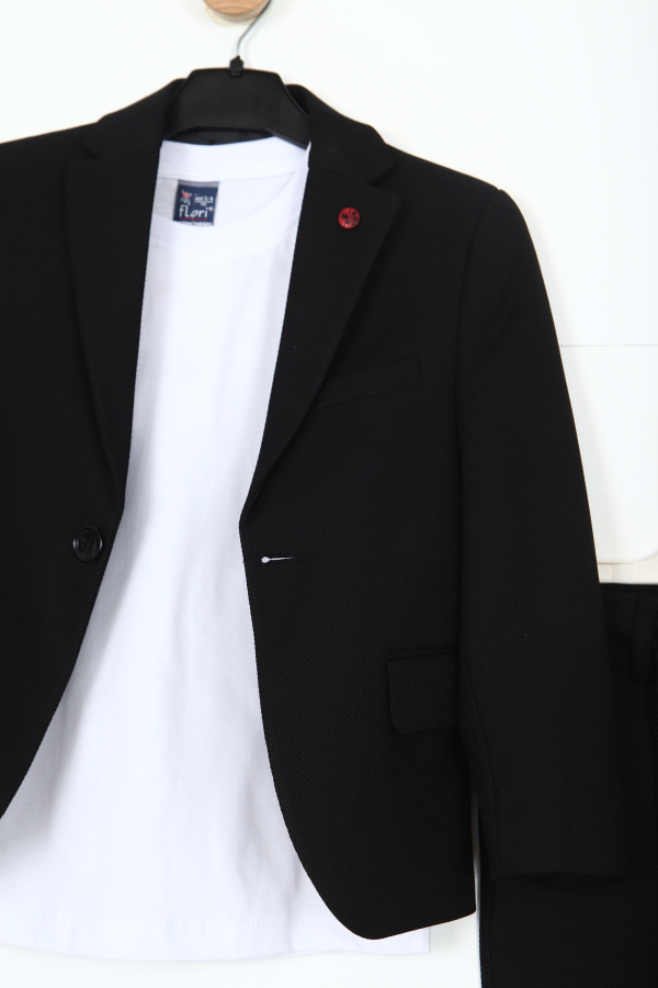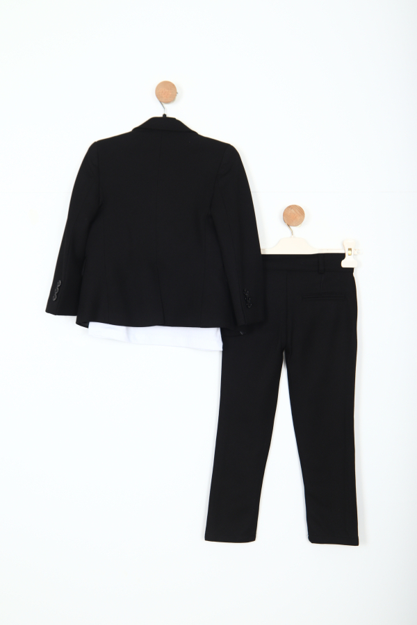 Bu şık erkek çocuk takım elbisesi, her özel gün için mükemmel bir tercihtir. Modern tasarımı ve kaliteli dokusu ile dikkat çeker. Üst kısmında düğmeli ceket ve alt kısmında konforlu bir pantolon bulunmaktadır.