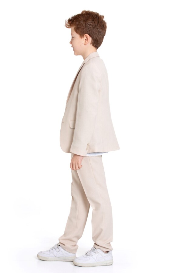 Bu şık erkek çocuk takım elbisesi, özel günler için mükemmel bir seçimdir. Hafif ve rahat bir kumaştan üretilmiştir, böylece çocuğunuz hareket özgürlüğüne sahip olur. Bej rengi, her türlü etkinlikte şıklık katmak için idealdir.