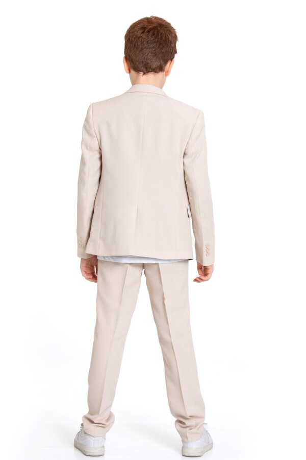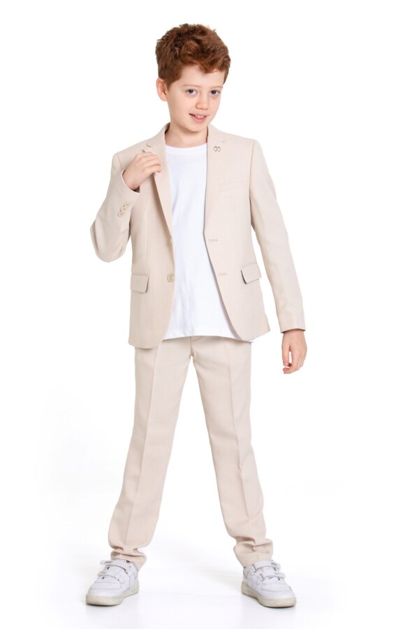 بدلة الأولاد الأنيقة هذه هي خيار مثالي للمناسبات الخاصة. مصنوعة من قماش خفيف ومريح، سيستمتع طفلك بحرية الحركة. اللون البيج يضيف لمسة من الأناقة لأي حدث.