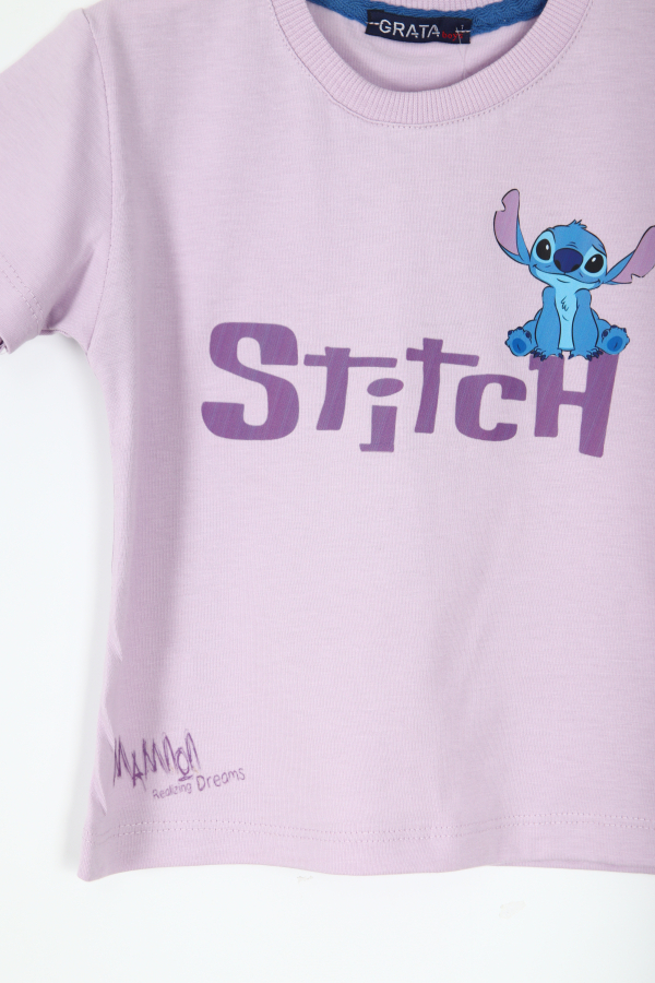 تيشيرت ليلك رائع هو اختيار مثالي لصغارك، يجمع بين الراحة والأناقة. يتميز بتصميم ستيتش الجذاب، ومن المؤكد أنه سيصبح المفضل لدى الأطفال. الأكمام القصيرة تجعله مناسبًا للارتداء في الطقس الدافئ.