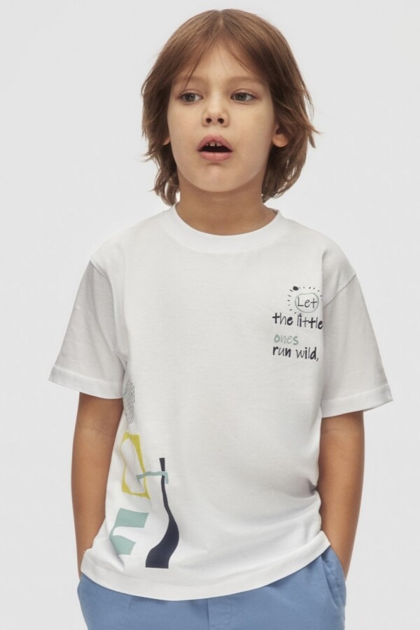 Bu erkek çocuk tişörtü, yaz günlerinde rahatlıkla giyilebilecek bir seçenek sunuyor. Beyaz rengiyle ferah bir görünüm sağlarken, ön kısmında çocukların hayal gücünü canlandıracak eğlenceli grafikler bulunuyor. Yumuşak pamuklu kumaşı sayesinde gün boyu konforlu bir kullanım sunar.