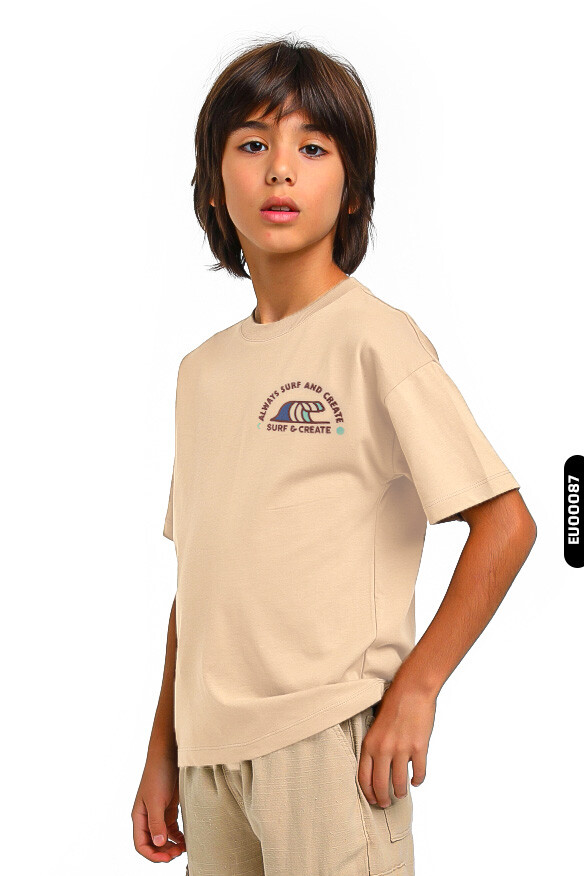 تتميز هذه القميص الأولاد بخفة الوزن وقماش يسمح بمرور الهواء، مما يجعلها مثالية لفصل الصيف. بتصميم بأكمام قصيرة وياقة دائرية، توفر راحة كبيرة أثناء الارتداء. تحتوي على رسومات ملونة بطابع ركوب الأمواج على الأمام والخلف، مما يضفي مظهراً رياضياً وحيوياً. اللون الكاميل الموحد يسهل تنسيقه مع الملابس اليومية، وقصتها الواسعة توفر حرية الحركة للأطفال.