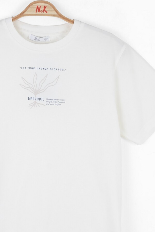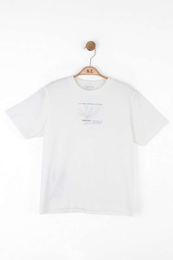 Bu şık erkek çocuk tişörtü, özgün tasarımı ve rahat kesimi ile dikkat çekiyor. Ekru rengi, yaz günlerinde ferahlık sunarken, ön kısmındaki çiçek desenleri ile çocukların hayal gücünü besliyor.