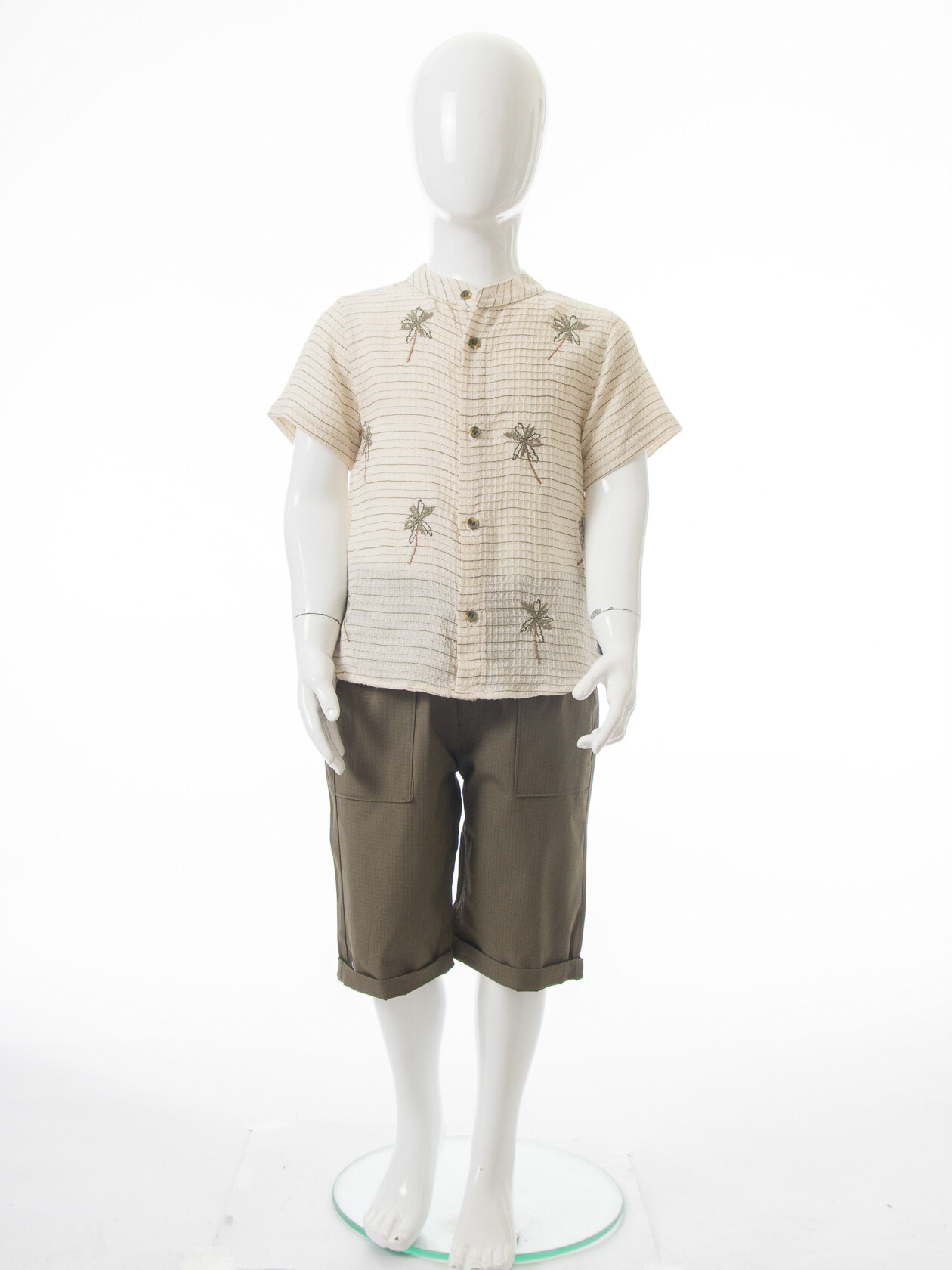 Erkek Çocuk Yazlık 2'li Alt Üst Takım (Gömlek + Şort) 1-5 Yaş 8087 Bej - Haki - 1