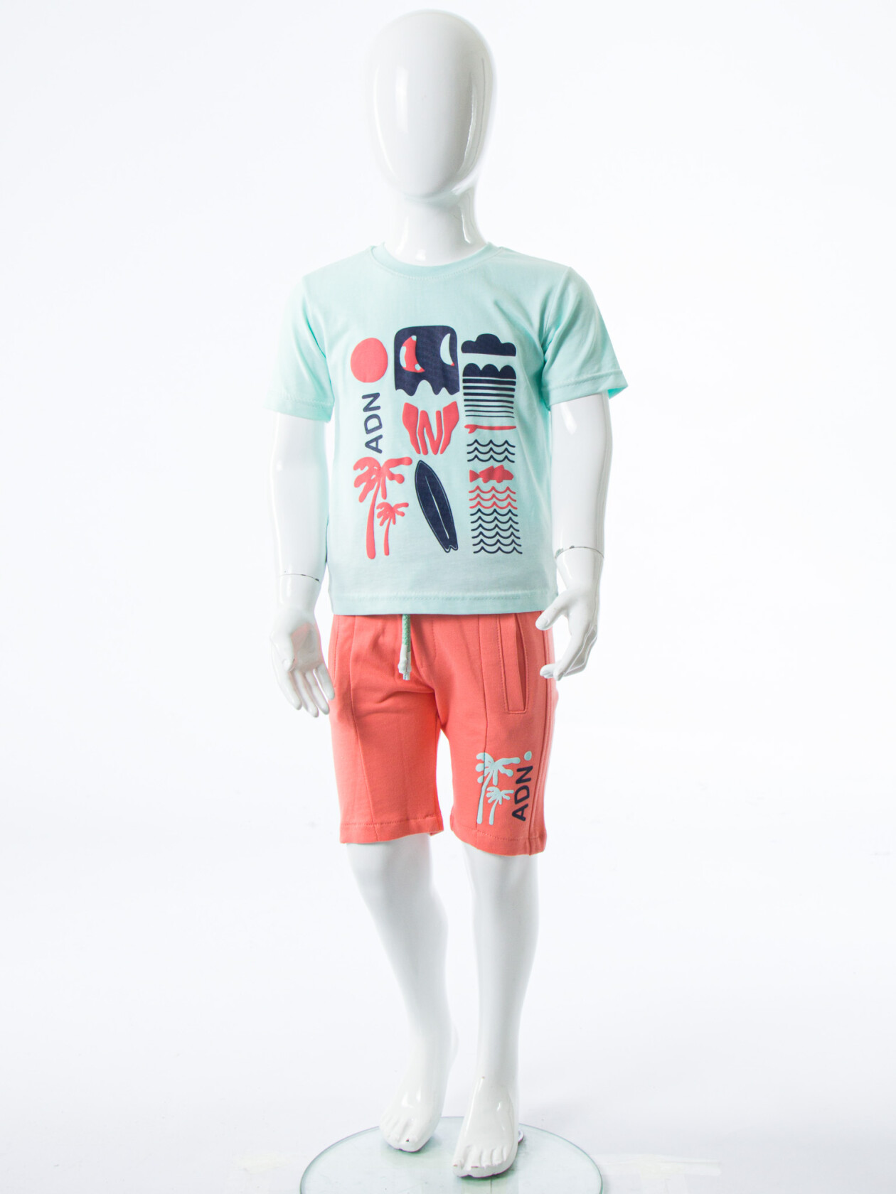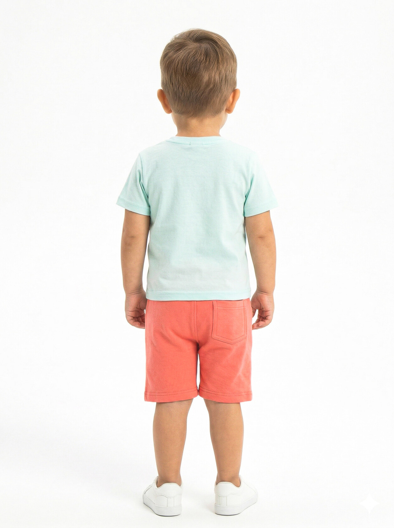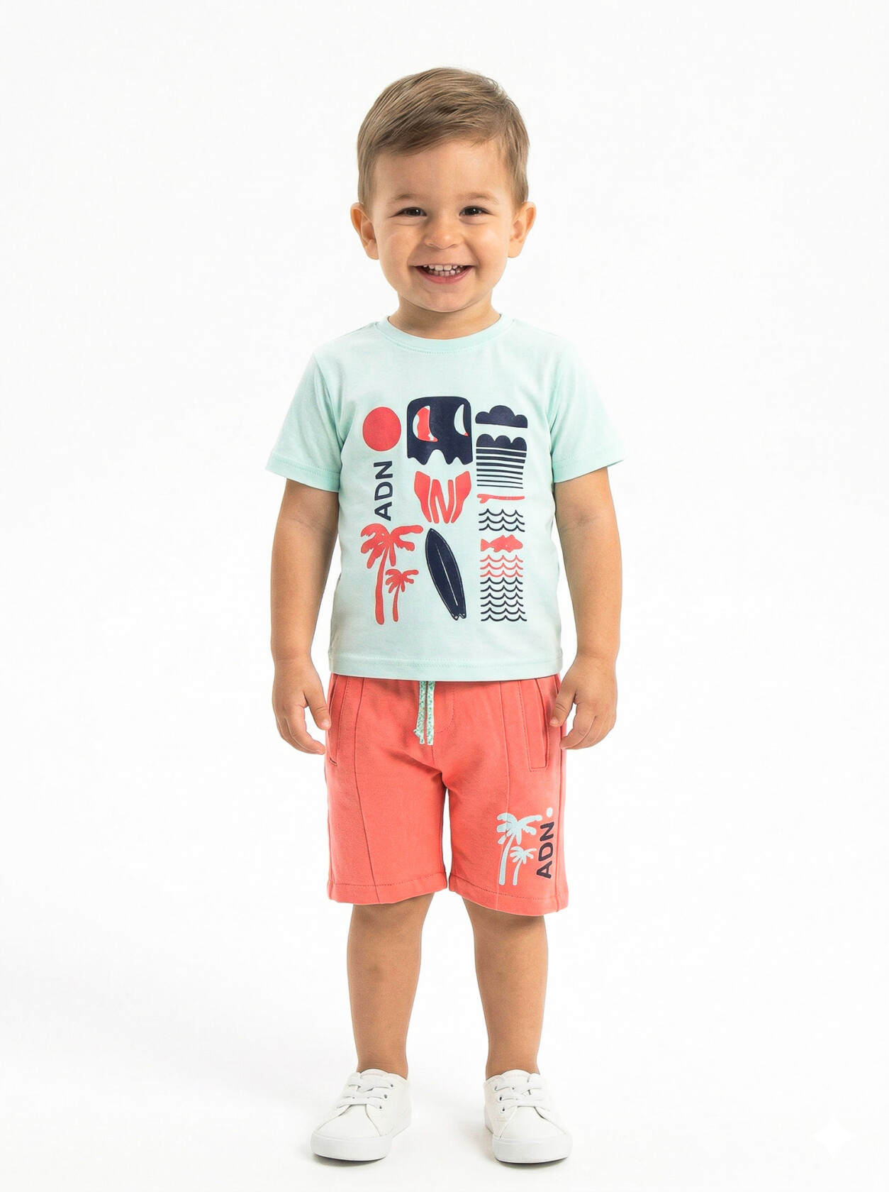 Bu rahat ve şık takım, çocuğunuzun yaz boyunca hareket özgürlüğü ile oynamasını sağlamak için tasarlandı. Yumuşak ve cilt dostu kumaşı ile gün boyu konfor sunar.