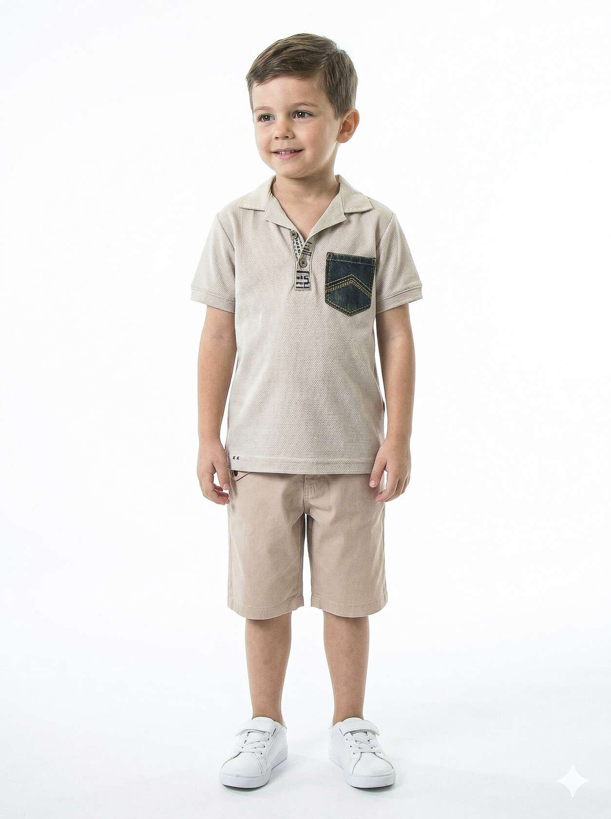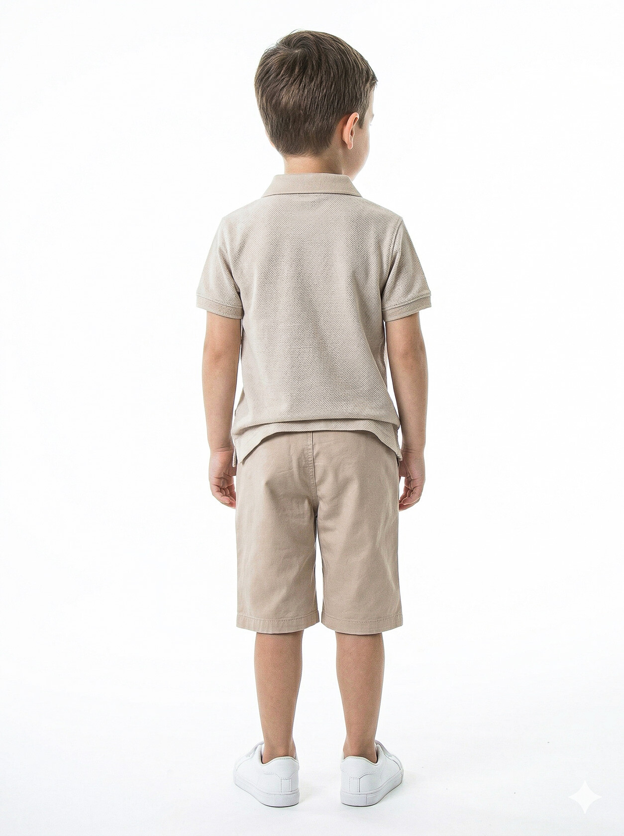 Çocukların yaz aylarında rahatça hareket edebilmesi için tasarlanmış bu takım, yumuşak ve nefes alabilen kumaşı ile gün boyu konfor sağlar. Şık ve sade tasarımı ile günlük kullanımda rahatlıkla tercih edilebilir.