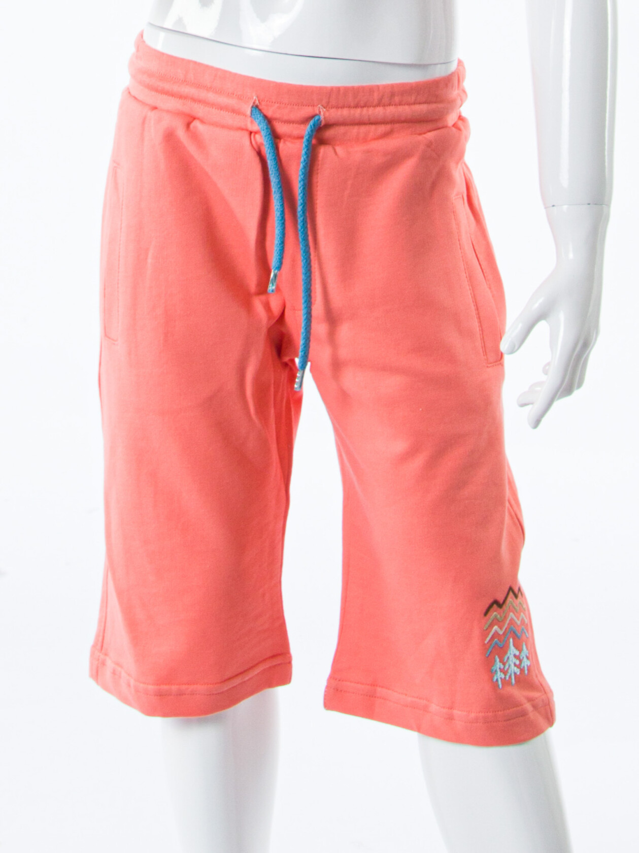 - Şort, bel kısmında lastik ve yan ceplere sahip.