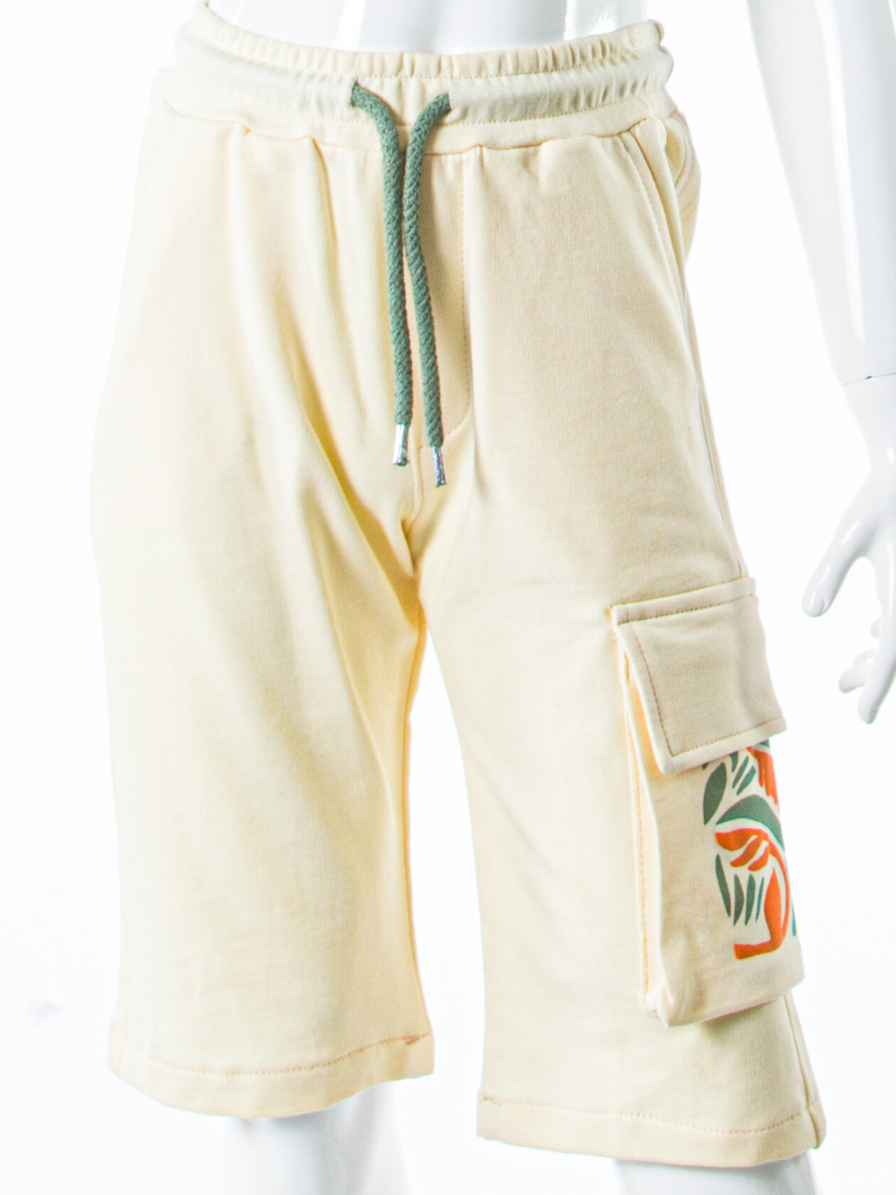 - Şort, yan ceplere sahip ve rahat bir kesime sahip.