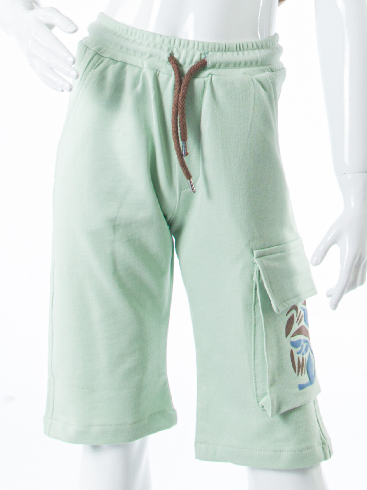 - Şort, yan ceplere sahip ve rahat bir kesime sahip.