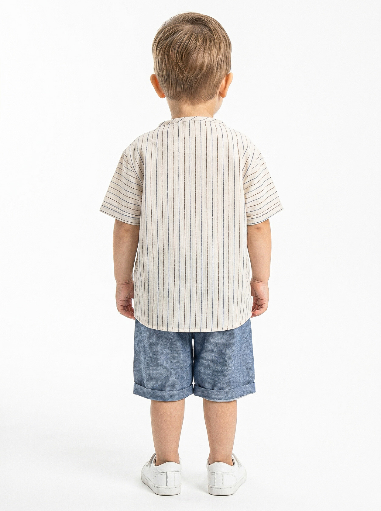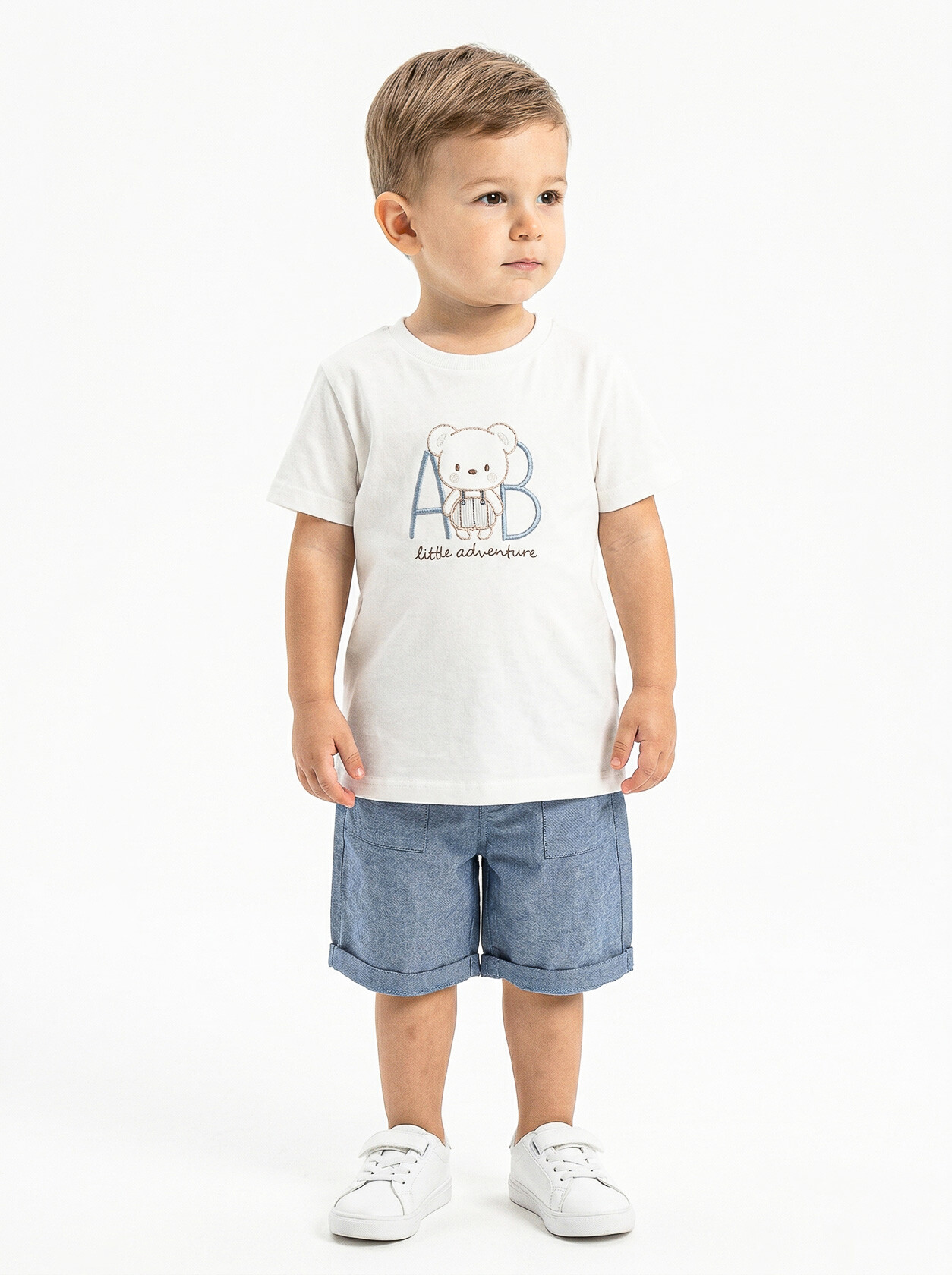 Çocuklarınızın yaz günlerini keyifle geçirebileceği bu şık takım, konfor ve şıklığı bir arada sunuyor. Rahat kesimi sayesinde hareket özgürlüğü sağlayarak, aktif çocuklar için mükemmel bir seçenek. Yumuşak ve cilt dostu malzemelerle tasarlanan bu ürün, gün boyu rahatlık sunar.