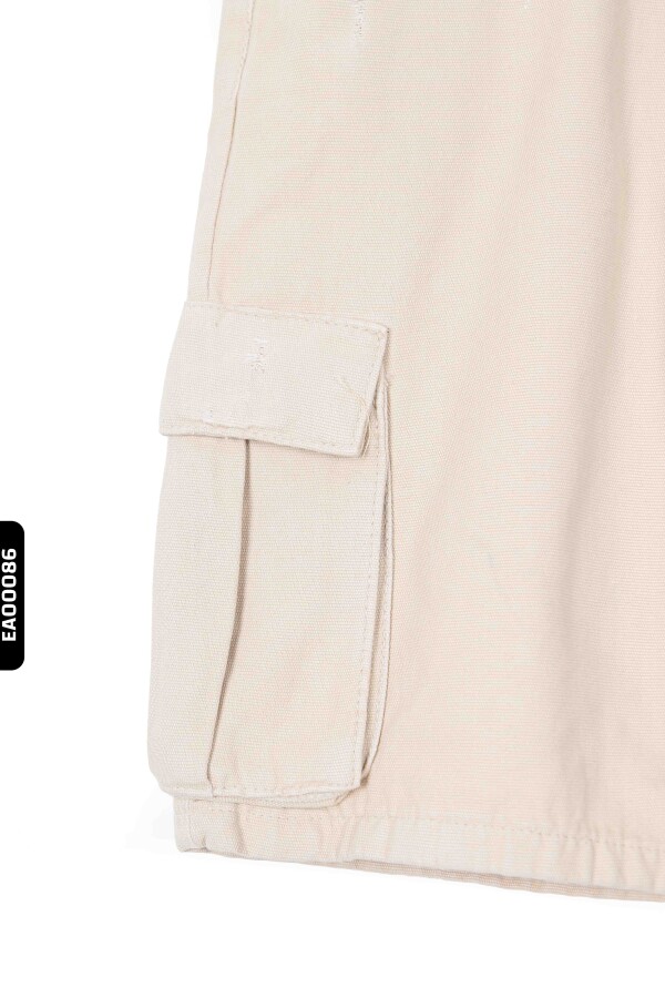 تقدم هذه السراويل القصيرة للأطفال الذكور خيارًا مريحًا وأنيقًا لفصل الصيف. تأتي بلون حجري طبيعي، مما يمنحها مظهرًا نظيفًا وبسيطًا. طولها متوسط يصل حتى الركبة ومصنوعة من قماش قطني متين. تحتوي على جيوب أمامية وخلفية، بالإضافة إلى جيوب جانبية واسعة بأغطية لسهولة التخزين. الخصر مزود بحلقات للحزام وإغلاق بزر وسحاب. مناسبة للاستخدام اليومي وتجمع بين الطابع الرياضي والكاجوال.