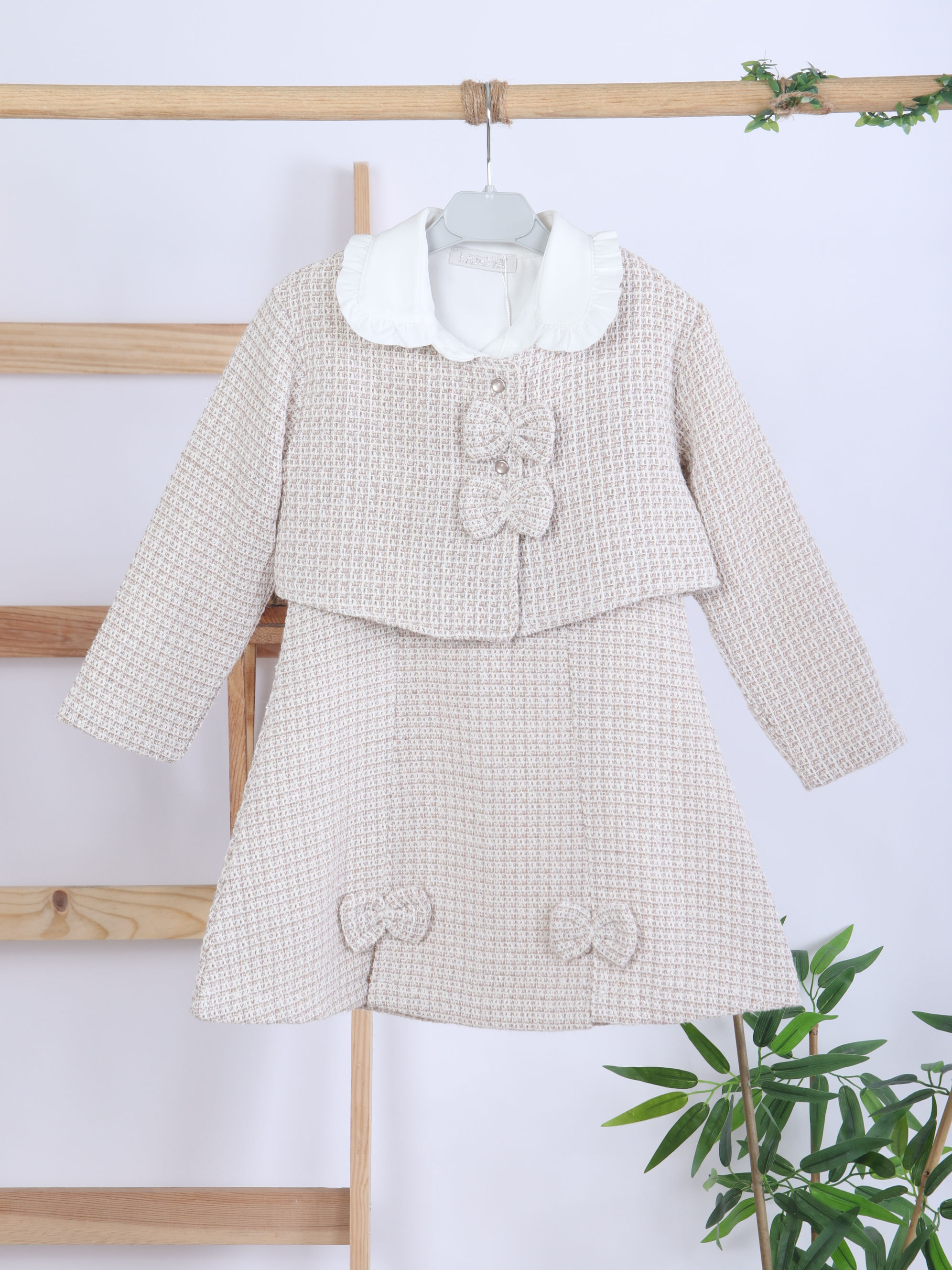 Kız Çocuk Elbise ve Kaban Takmı 2-6 Yaş 400 Kahve