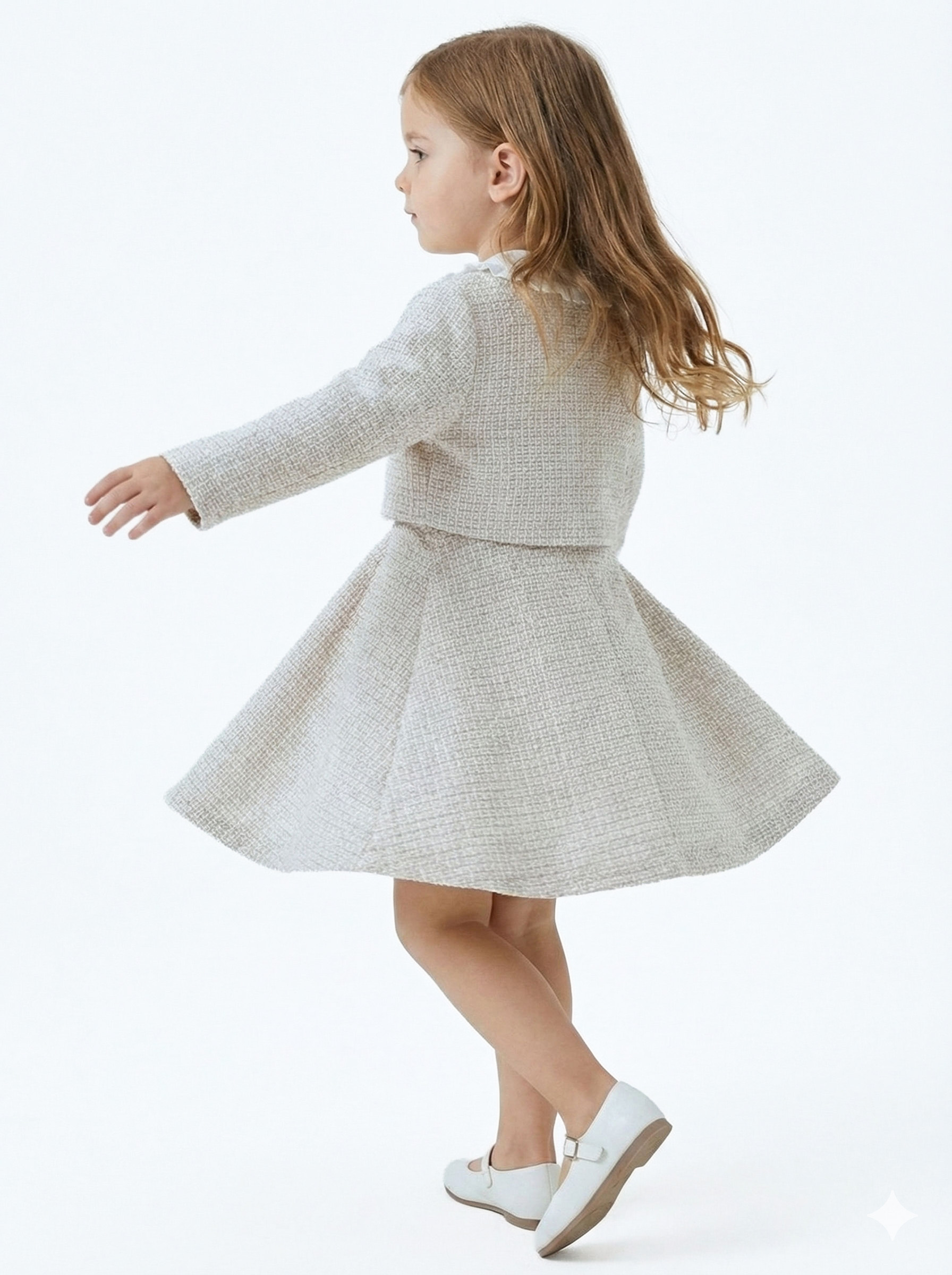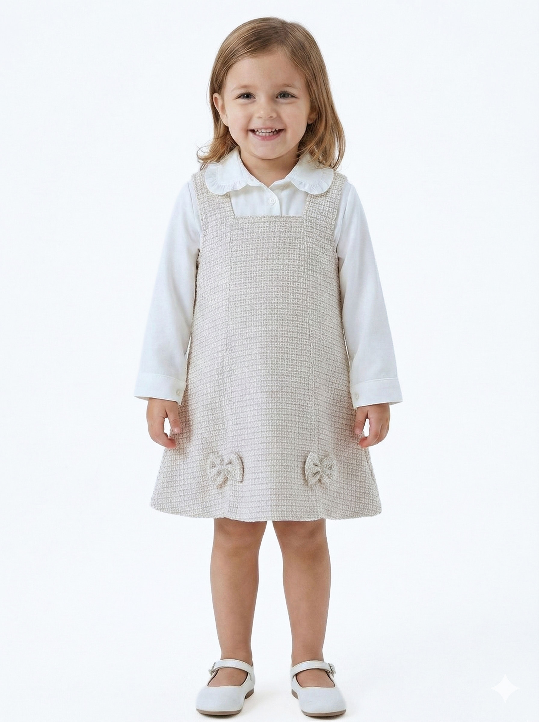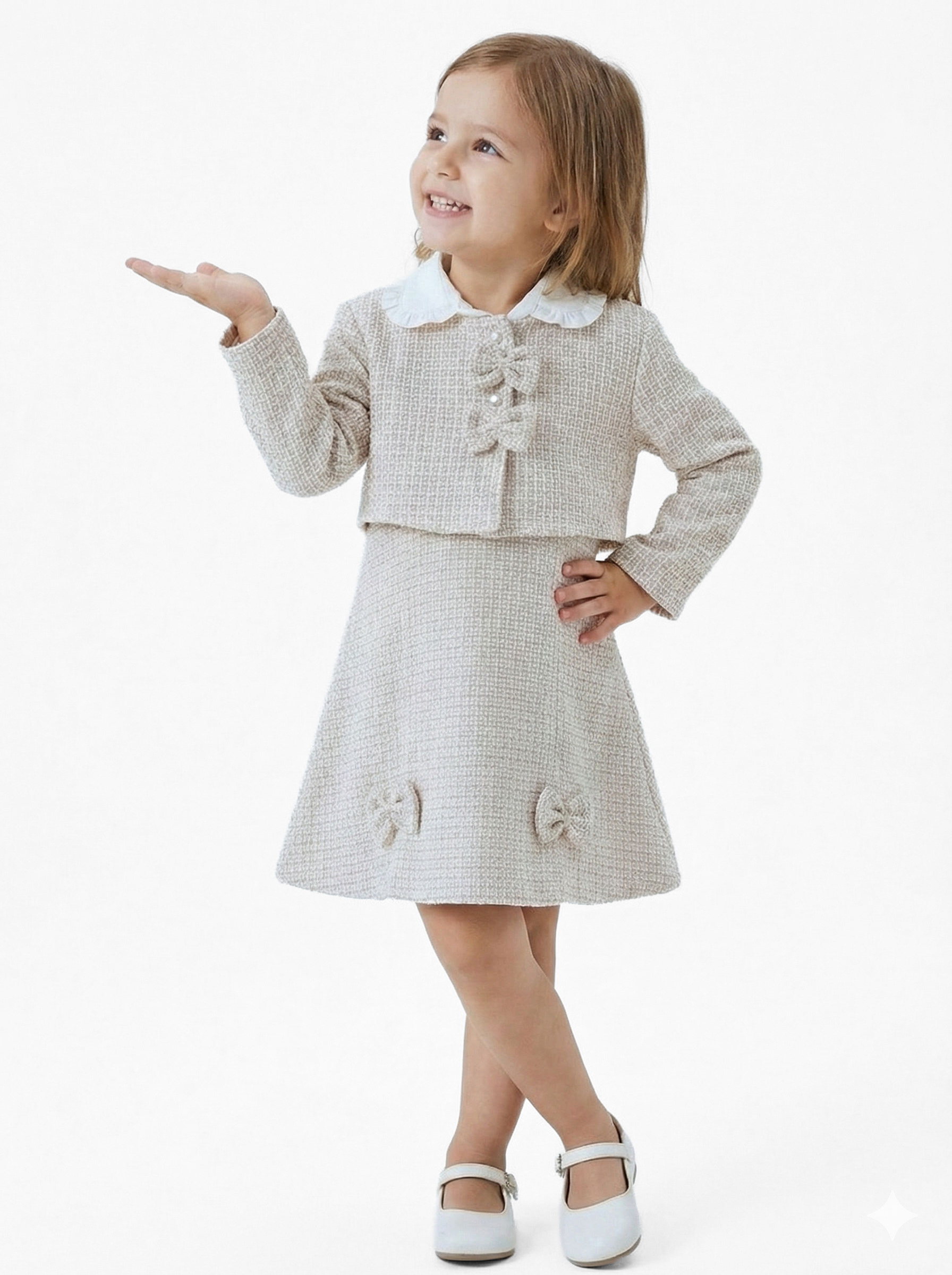 Kız Çocuk Elbise 4-8 Yaş 1605 Ekru