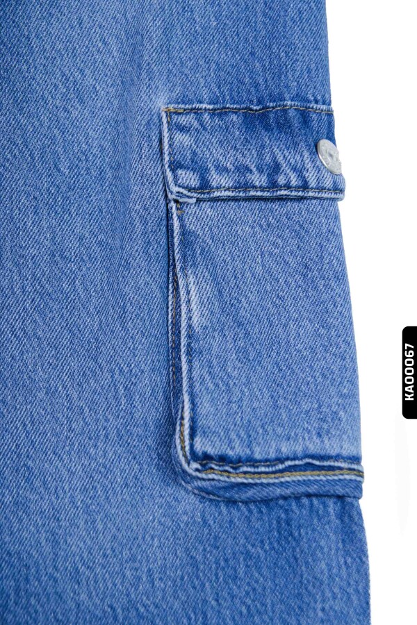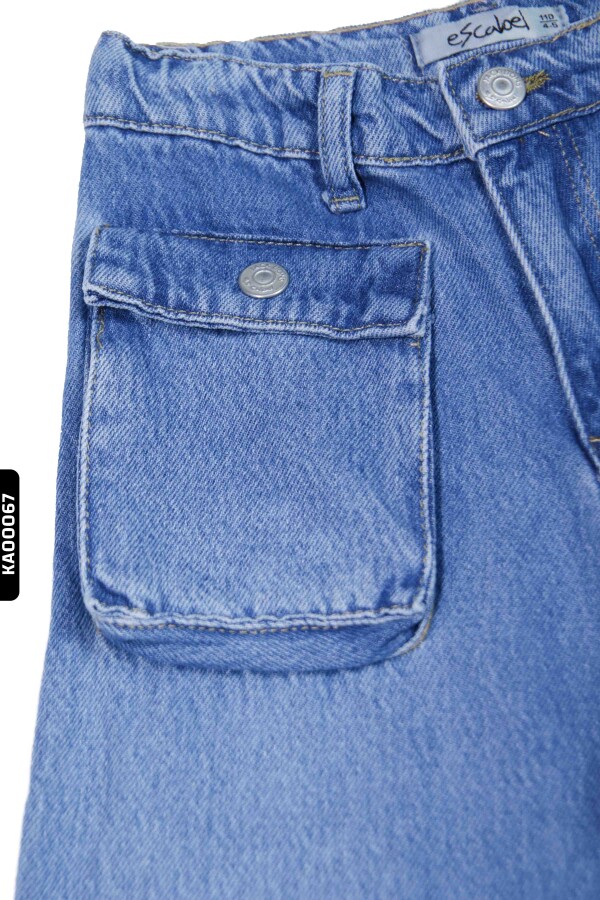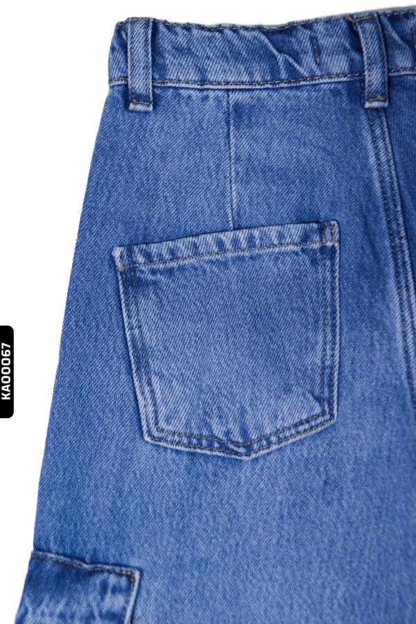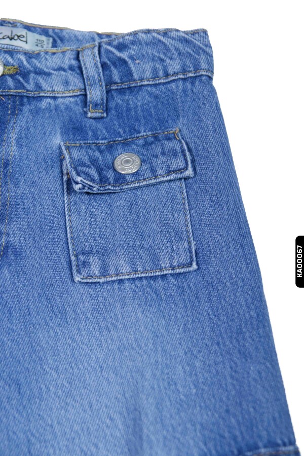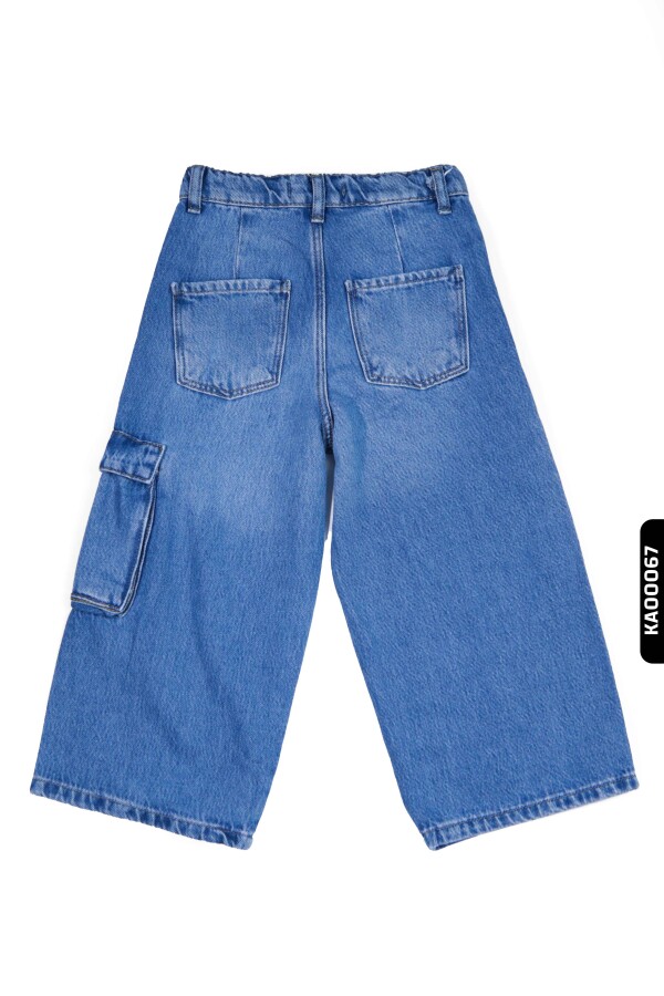 Geniş Paçalı Kargo Cepli Yüksek Belli Kız Çocuk Pantolon 5-14 Yaş 2452 Mavi - 4
