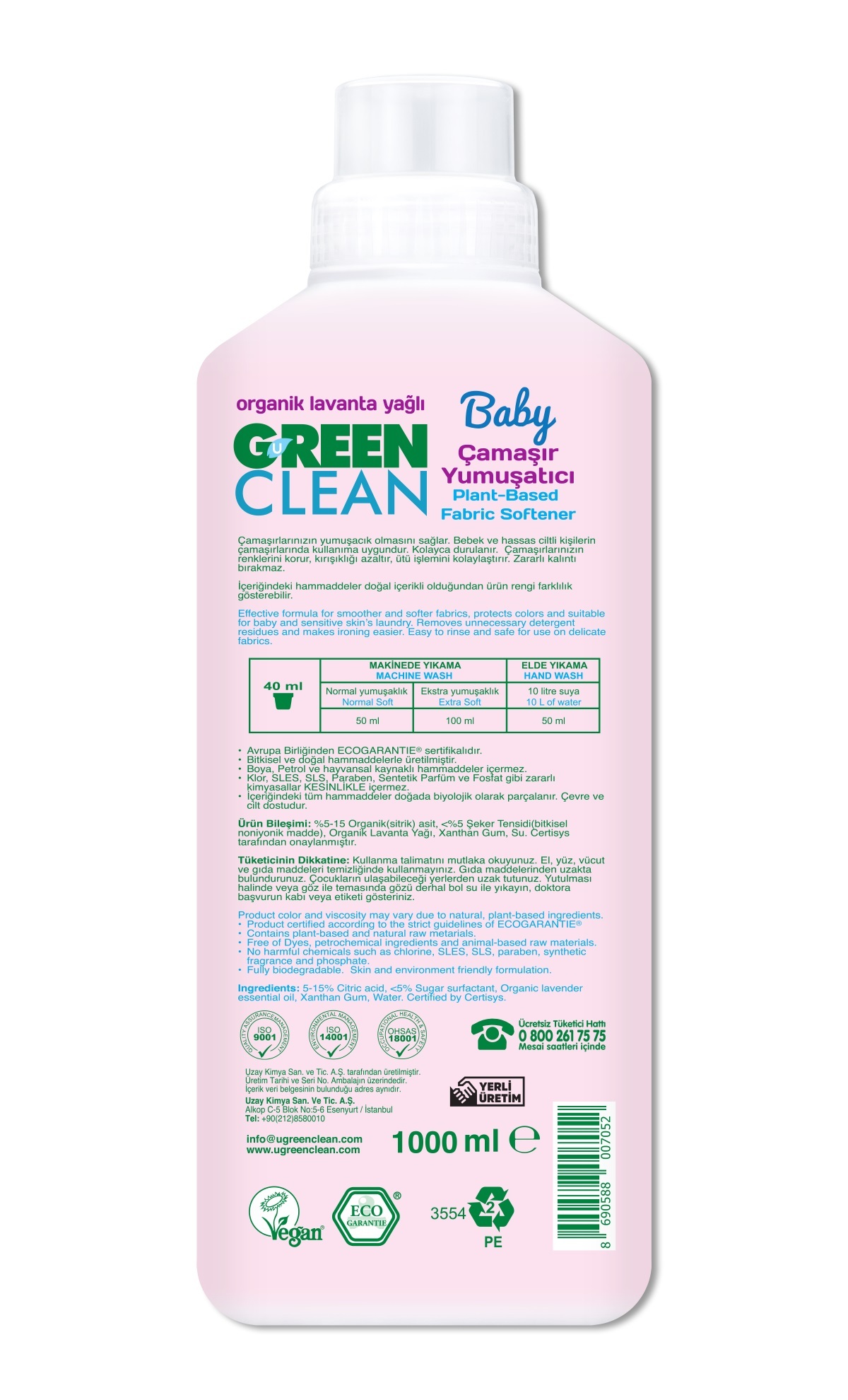 منعم أقمشة جرين كلين بيبي العشبي 1000 مل، المميزات: