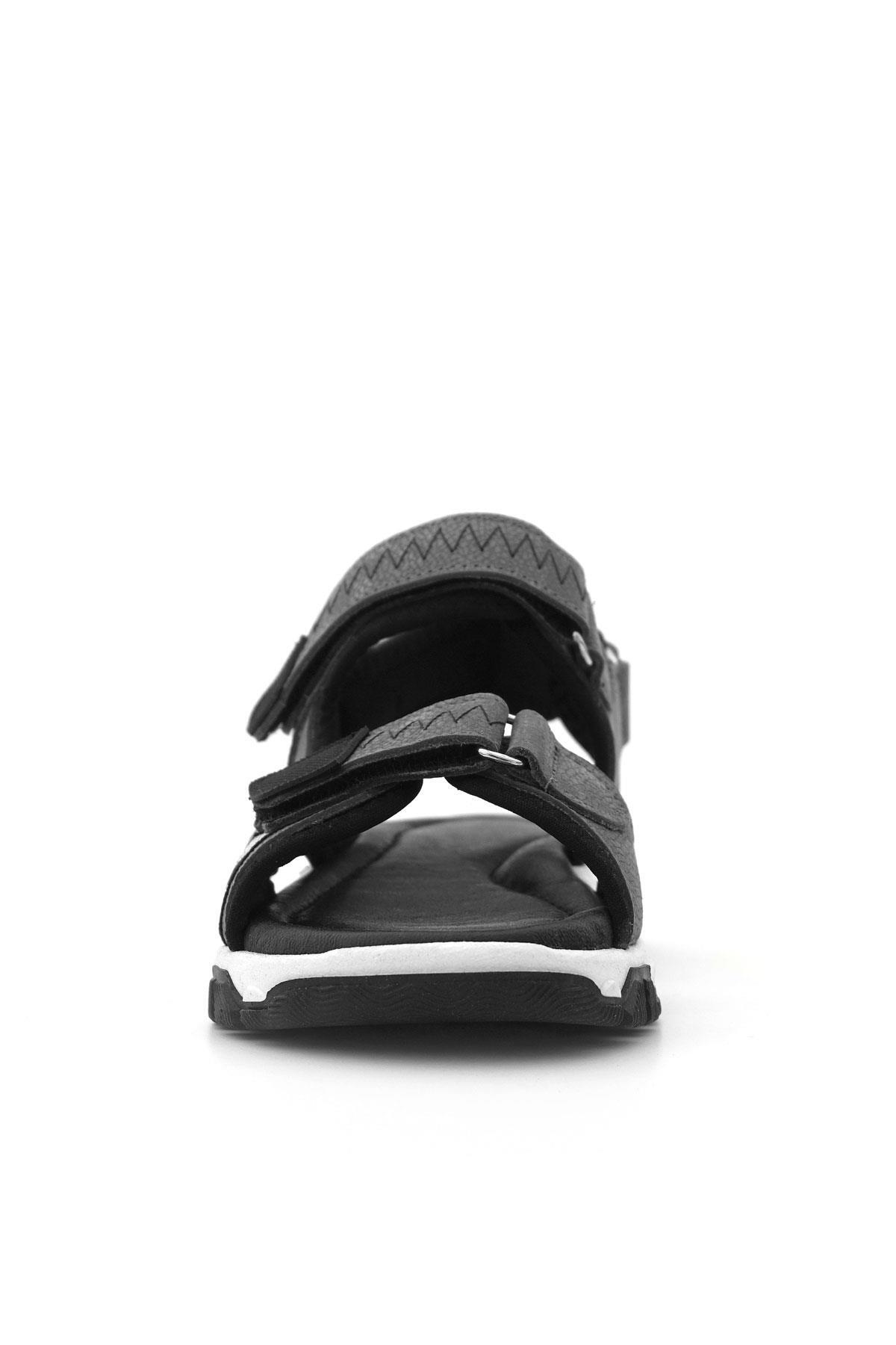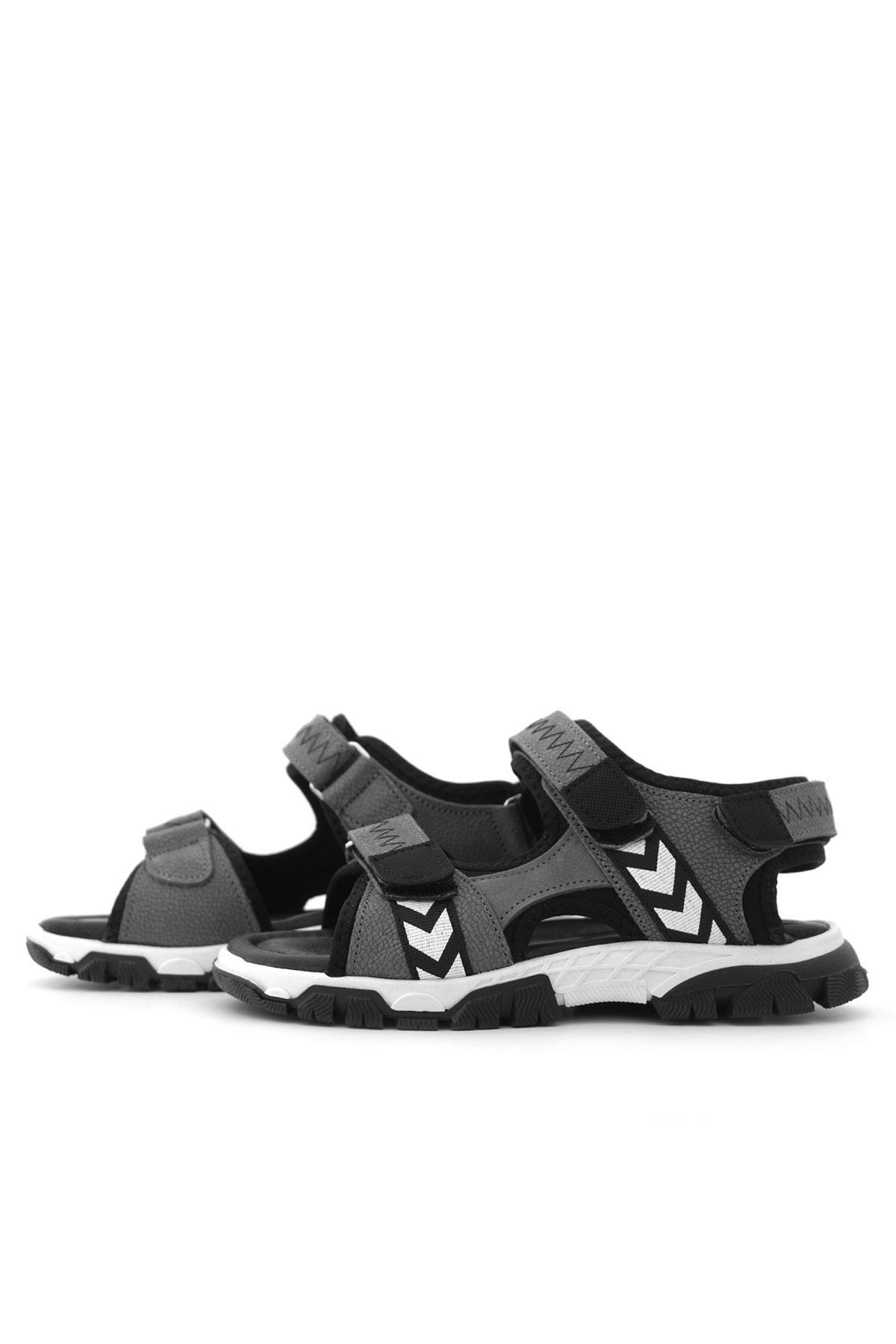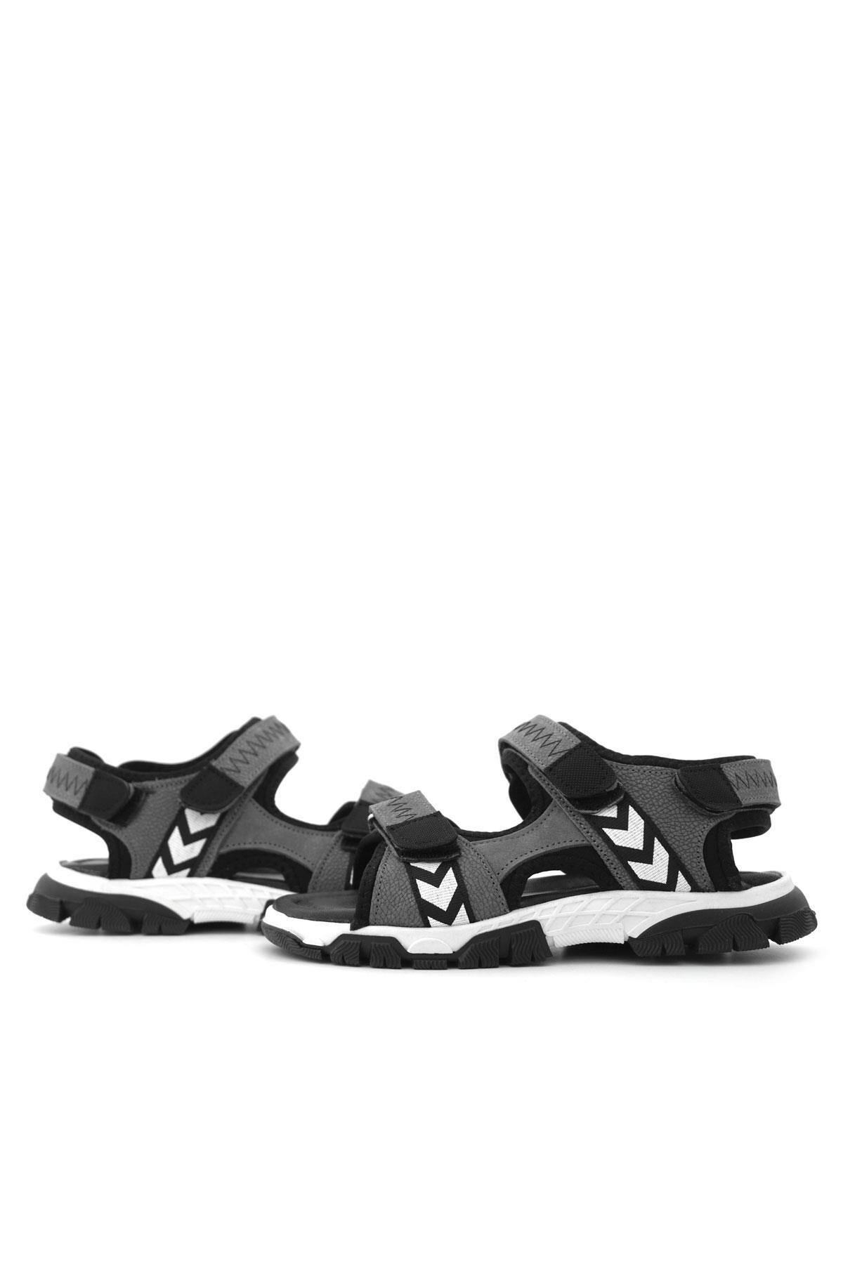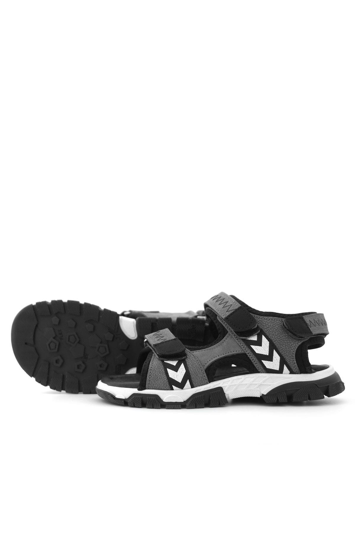 صندل فيلكرو رمادي أسود من الجلد الطبيعي للأولاد