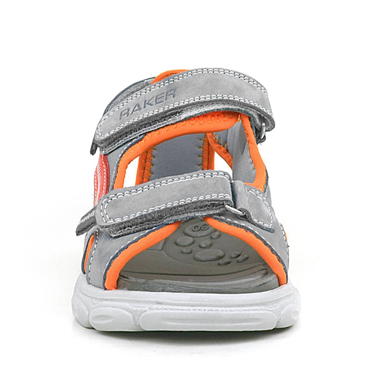 Hakiki Deri Gri Turuncu Çocuk Sandalet Ayakkabı - 3
