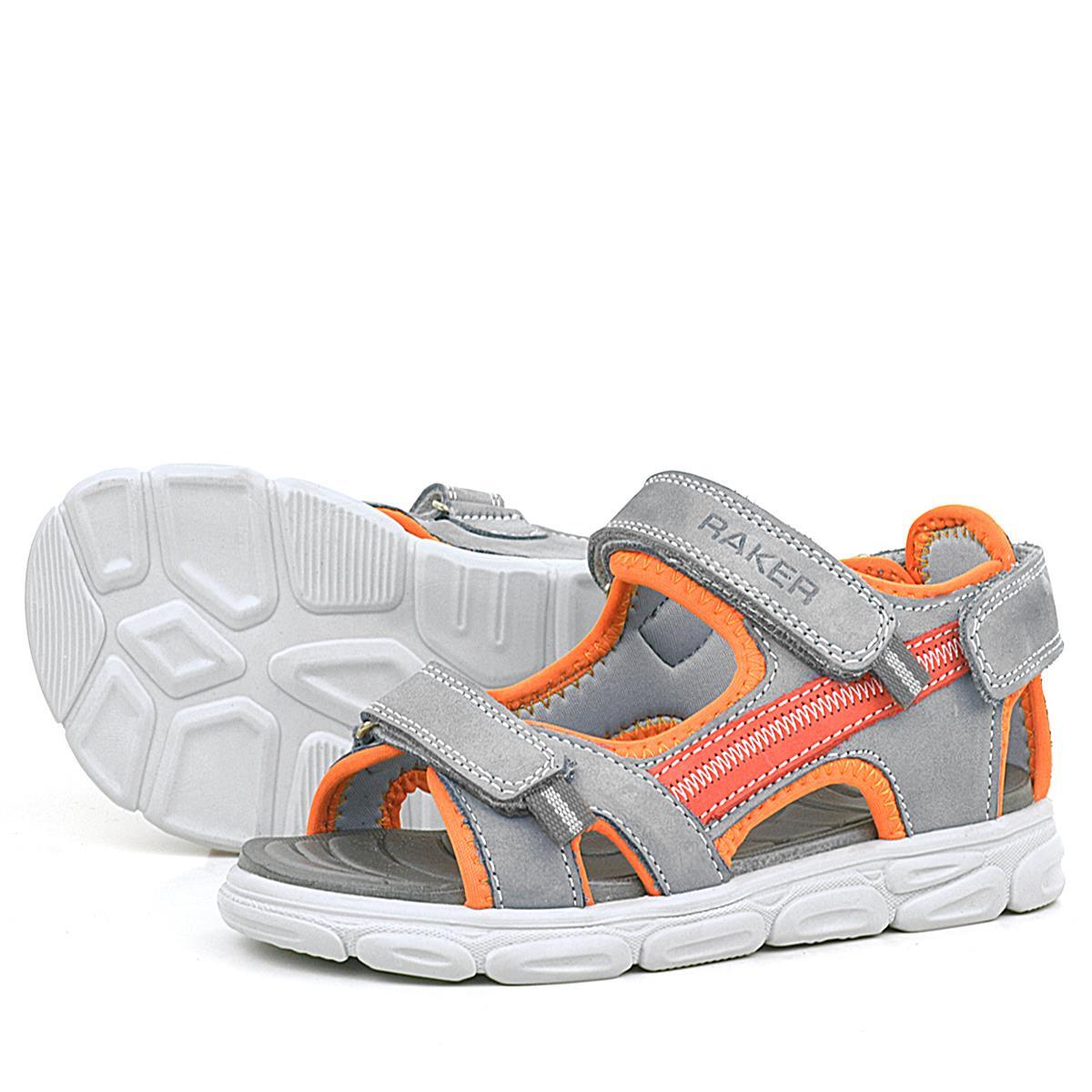 Hakiki Deri Gri Turuncu Çocuk Sandalet Ayakkabı