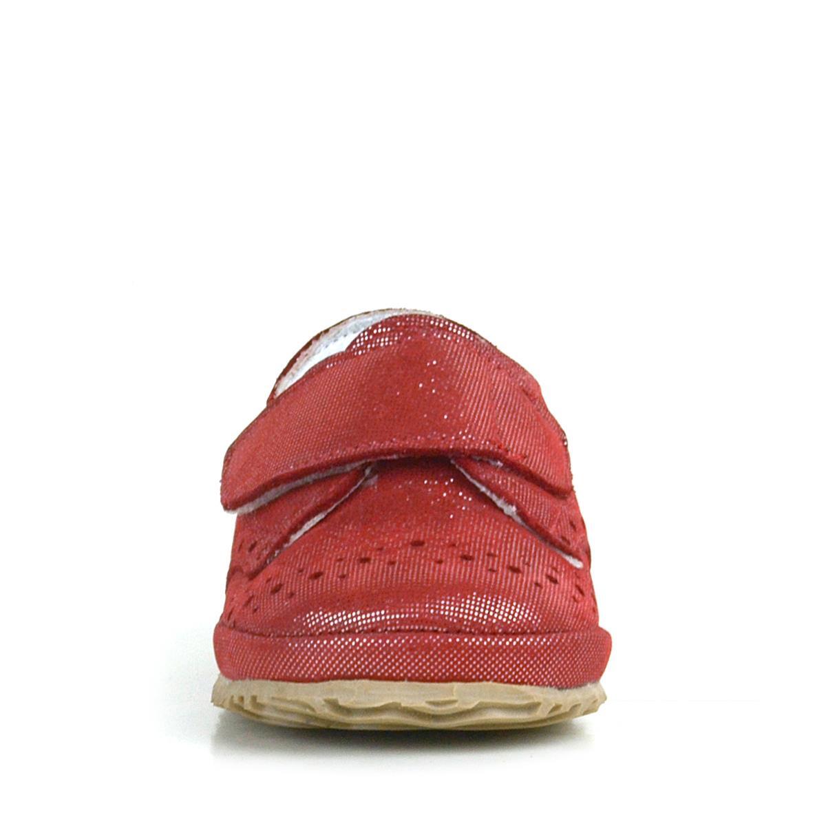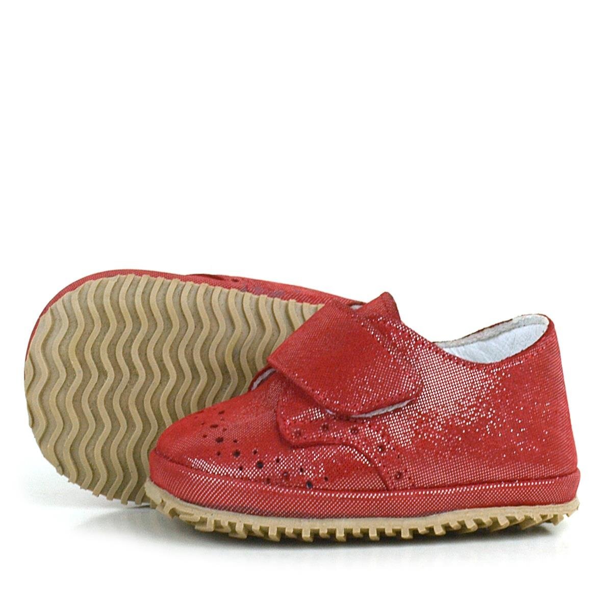Hakiki Deri Kırmızı Simli Cırtlı Bebek Patik Ayakkabı