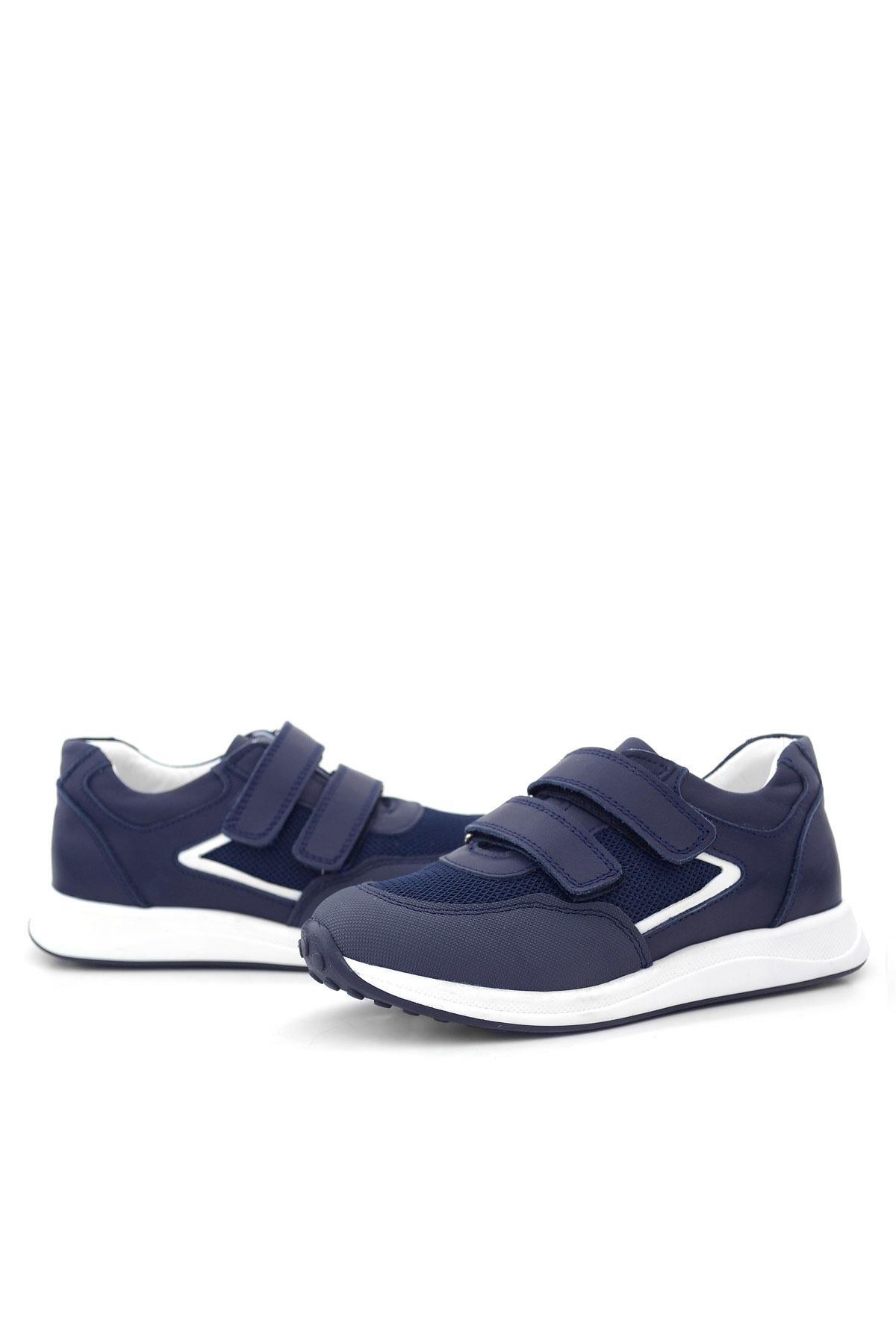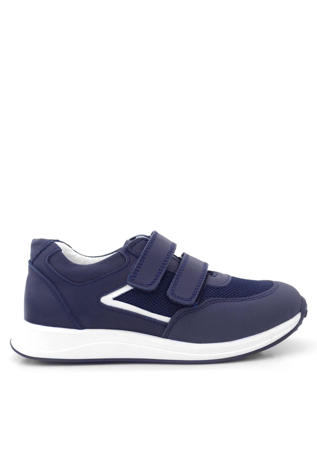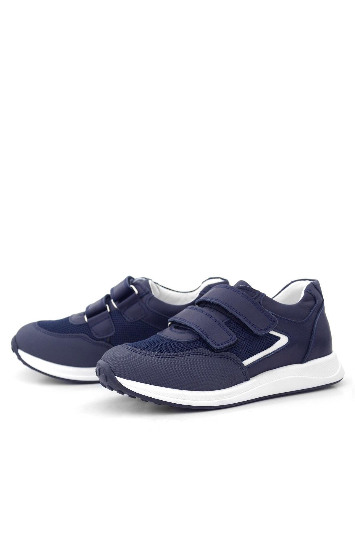Hakiki Deri Lacivert Beyaz Cırt Cırtlı Erkek Çocuk Spor Ayakkabı