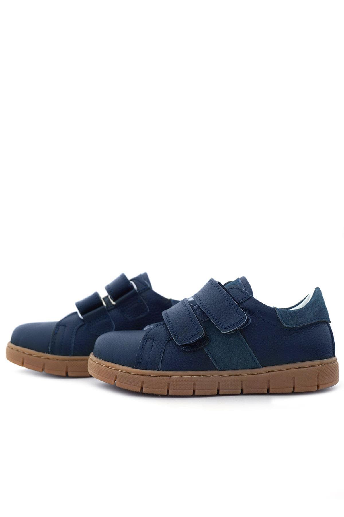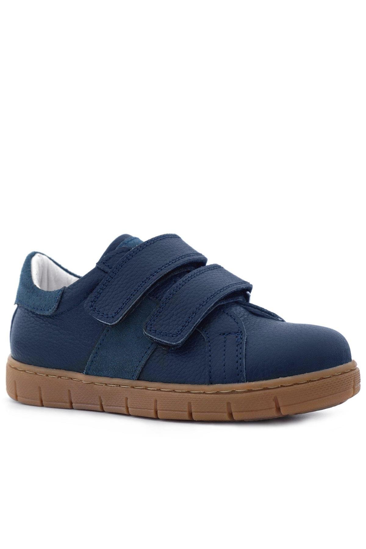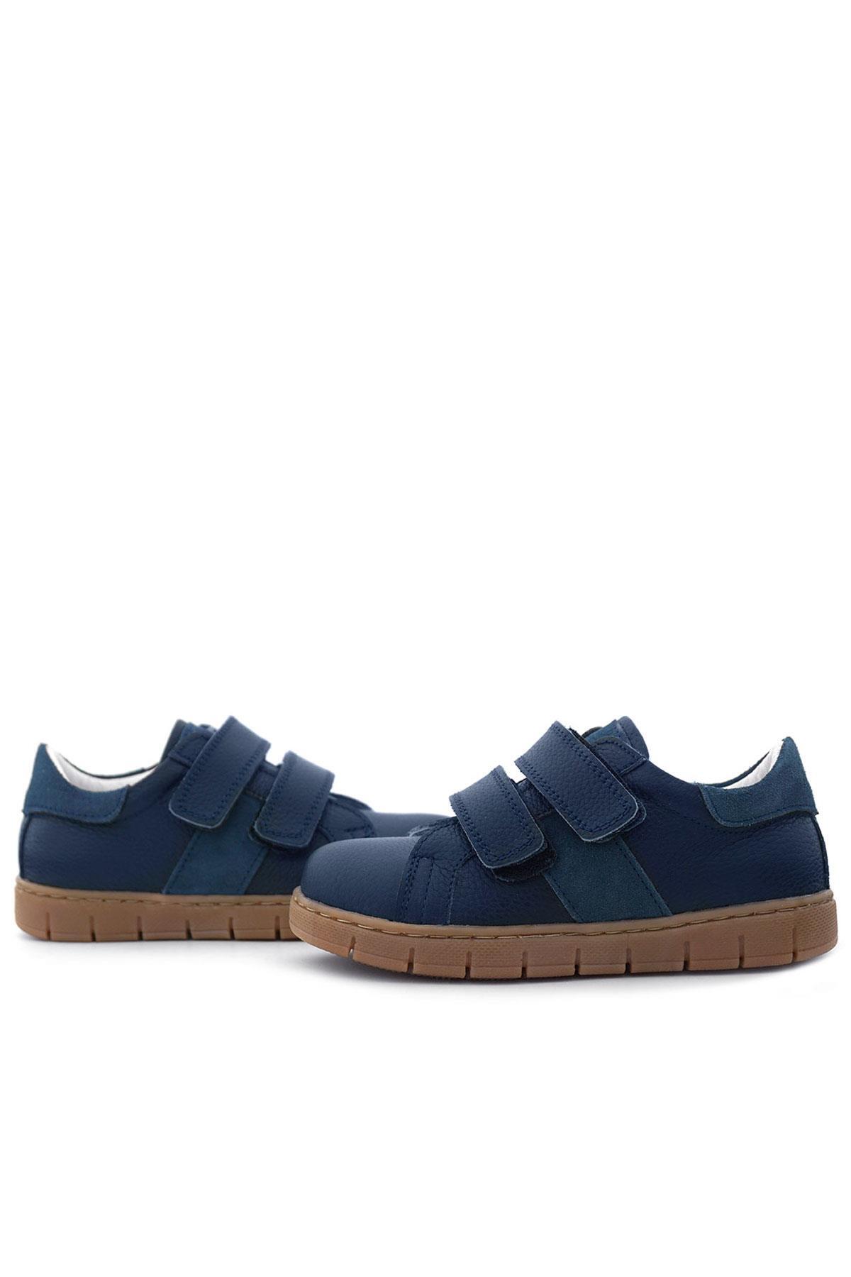 Hakiki Deri Lacivert Cırt Cırtlı Erkek Çocuk Spor Ayakkabı