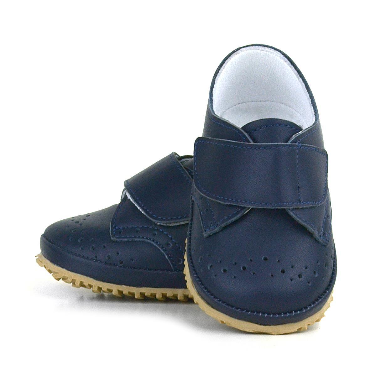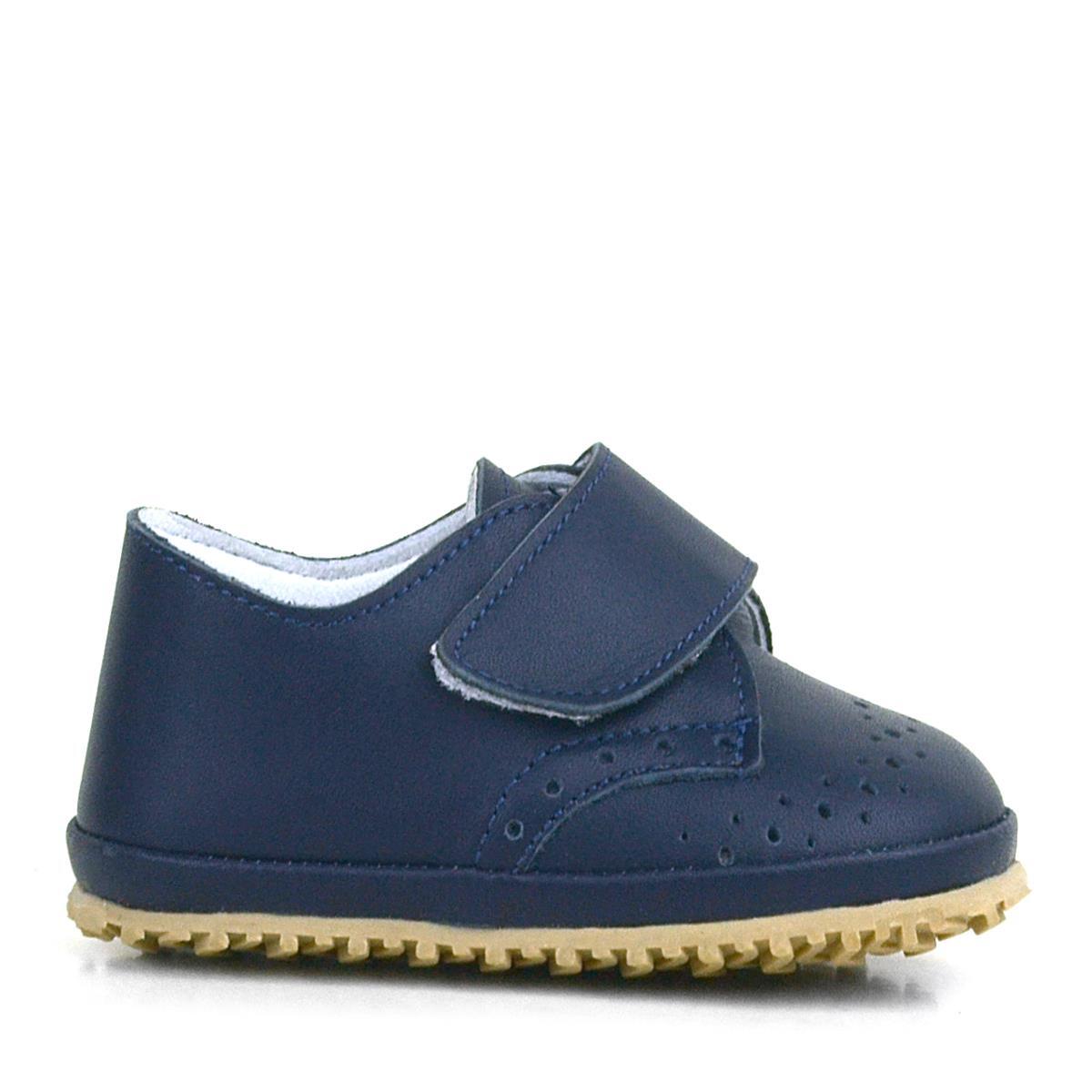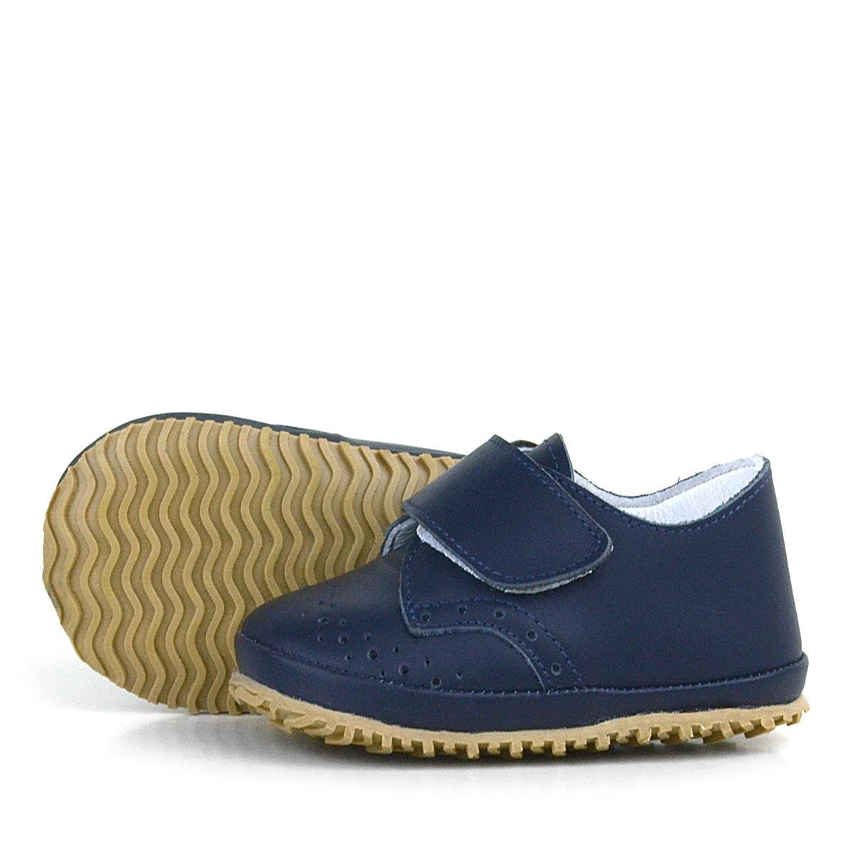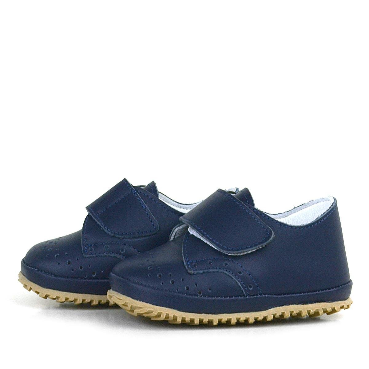 حذاء أطفال من الجلد الطبيعي بشريط فيلكرو أزرق داكن