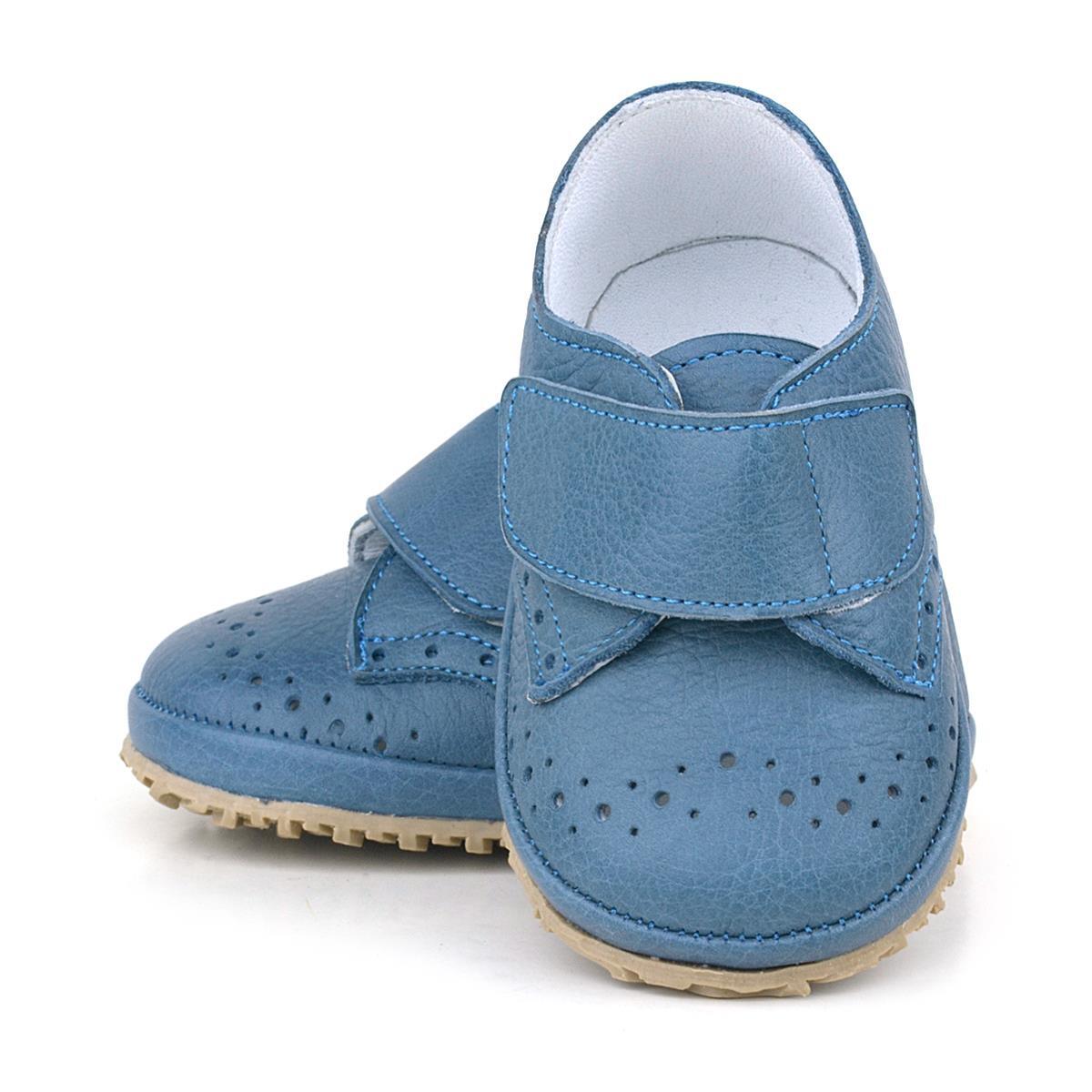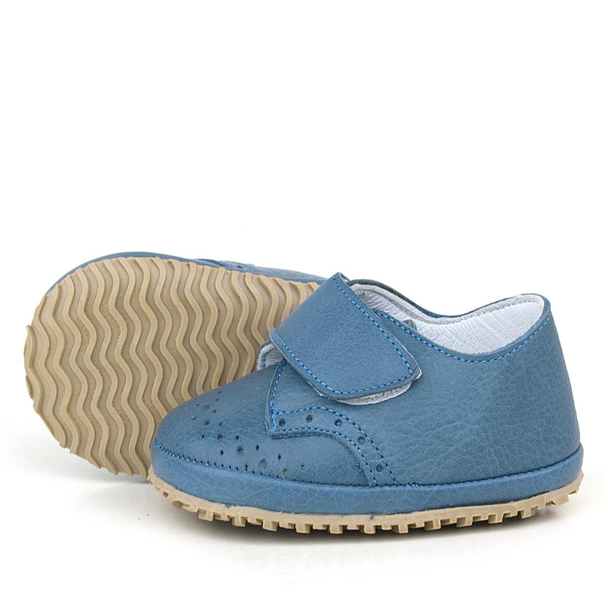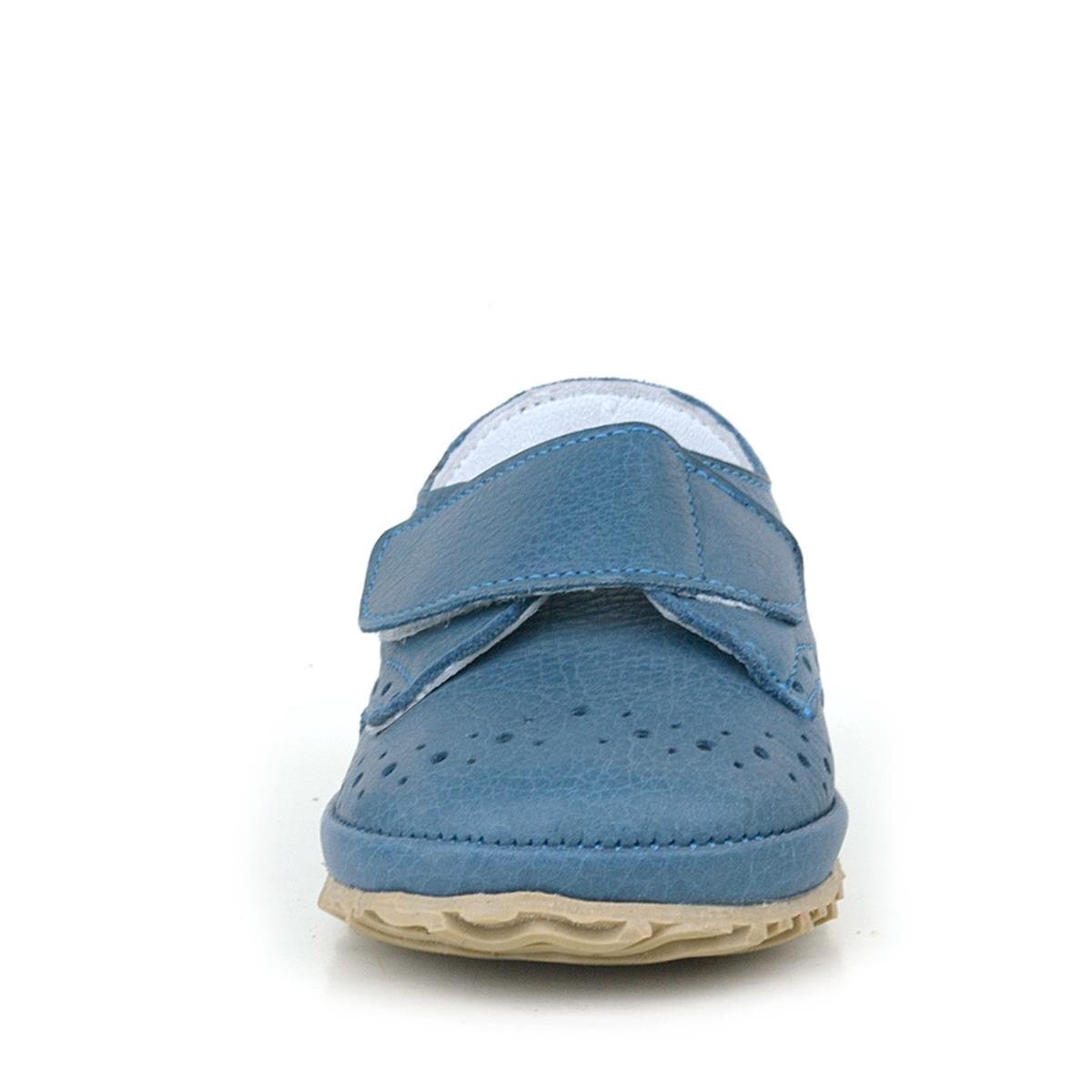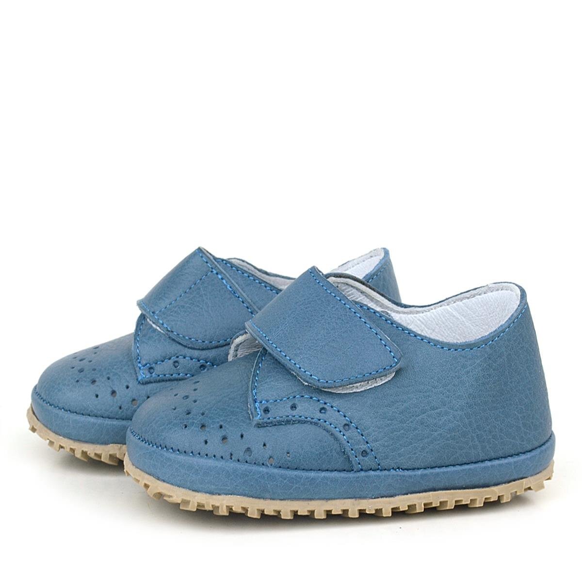 حذاء أطفال من الجلد الطبيعي بشريط فيلكرو أزرق داكن