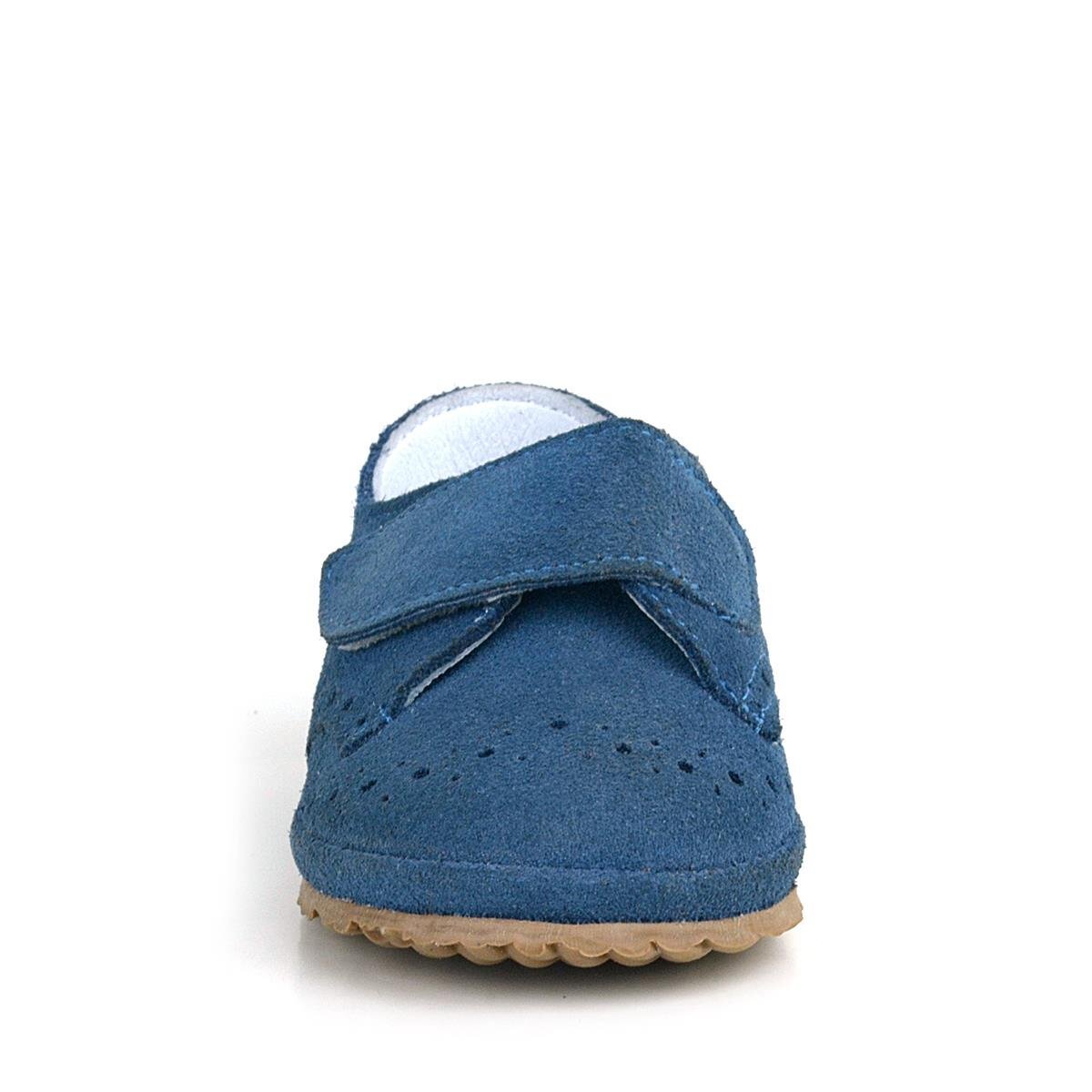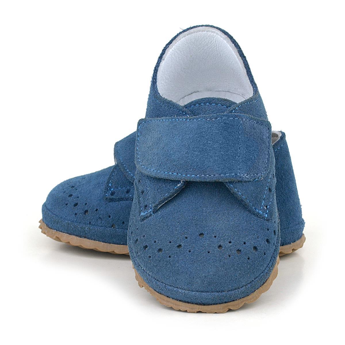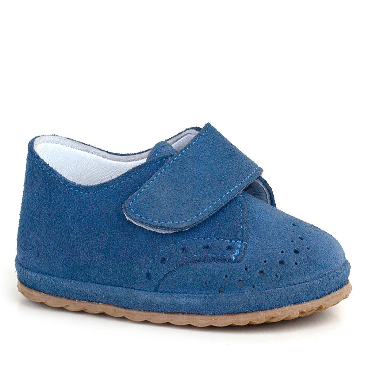 حذاء أطفال من الجلد الطبيعي باللون الأزرق الداكن مع شريط فيلكرو