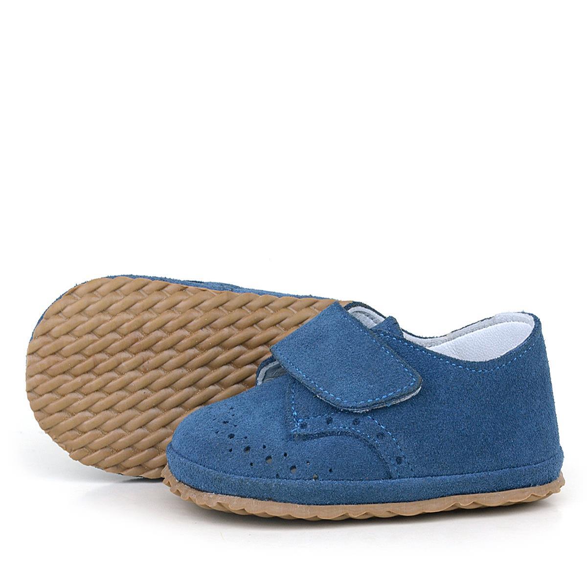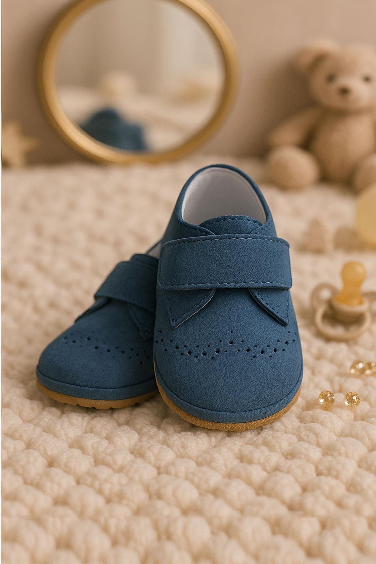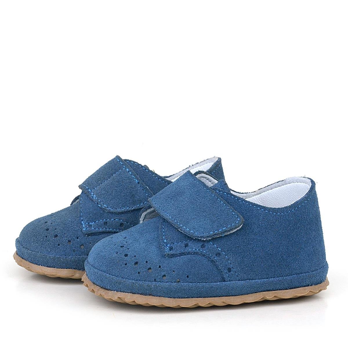 حذاء أطفال من الجلد الطبيعي باللون الأزرق الداكن مع شريط فيلكرو