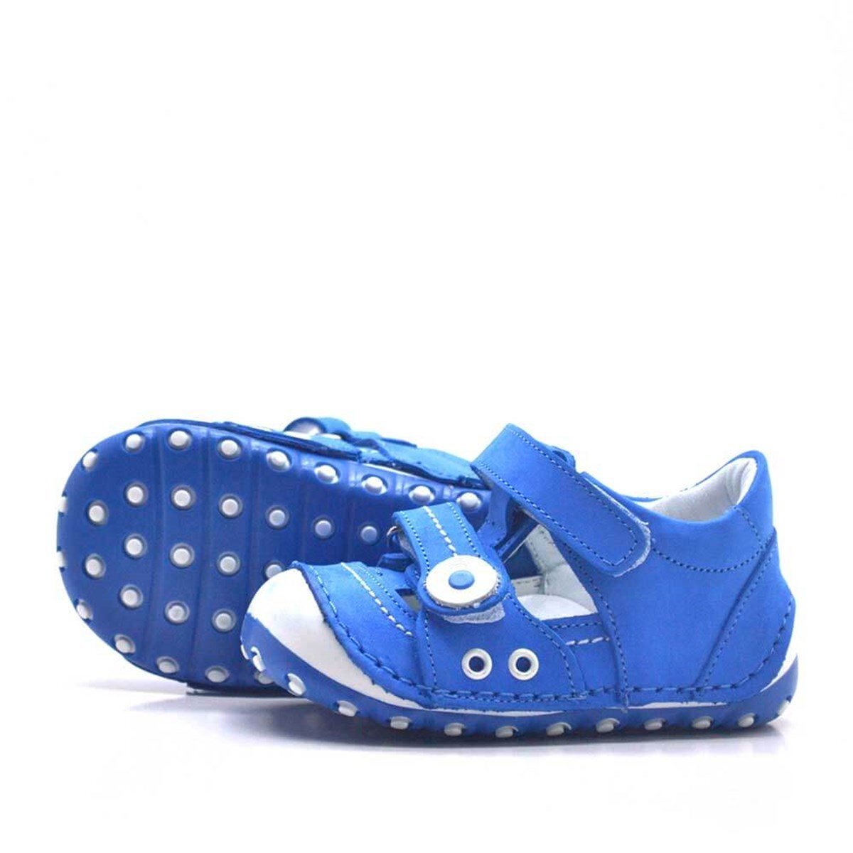Hakiki Deri Mavi Cırtlı Yazlık İlk Adım Ayakkabı