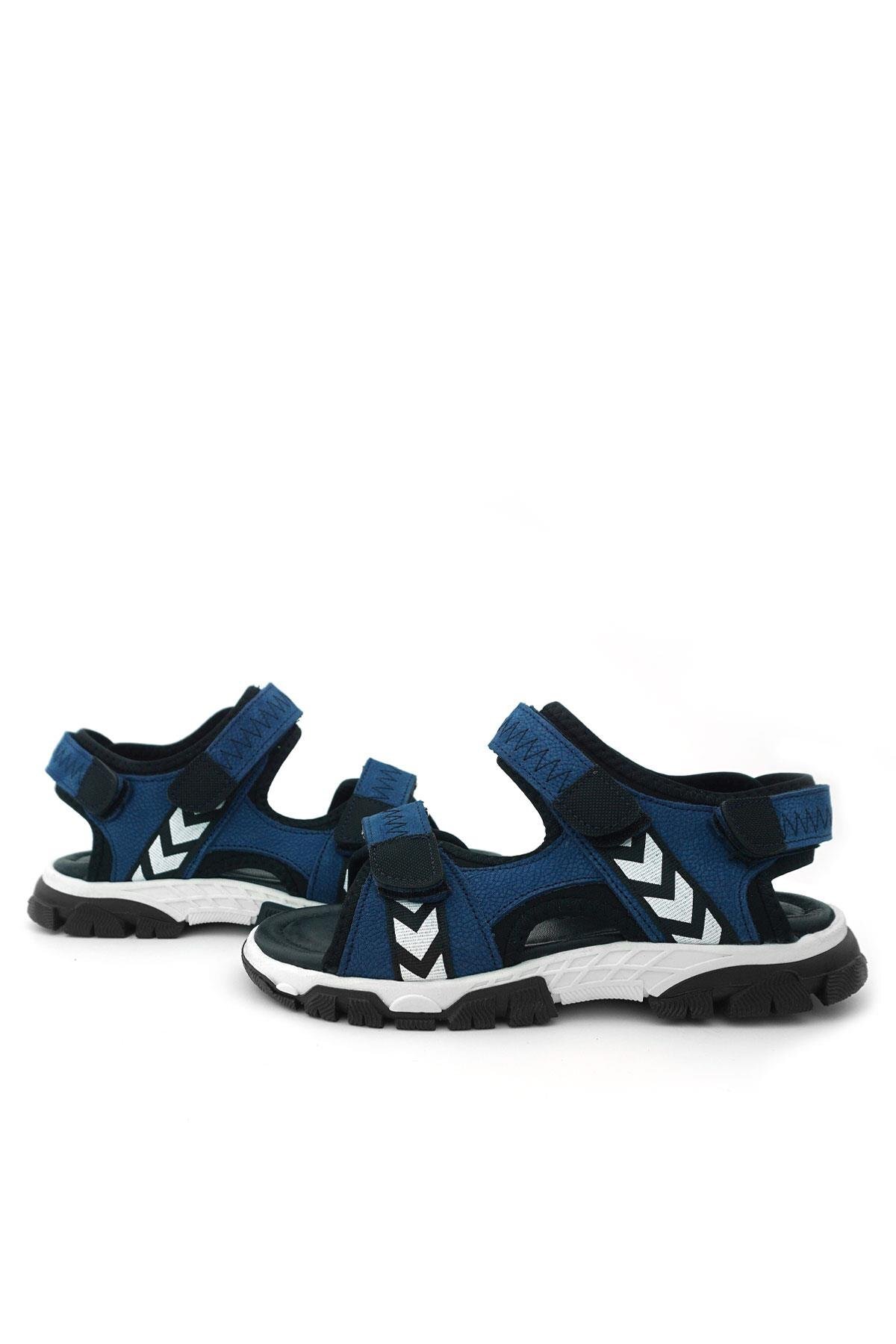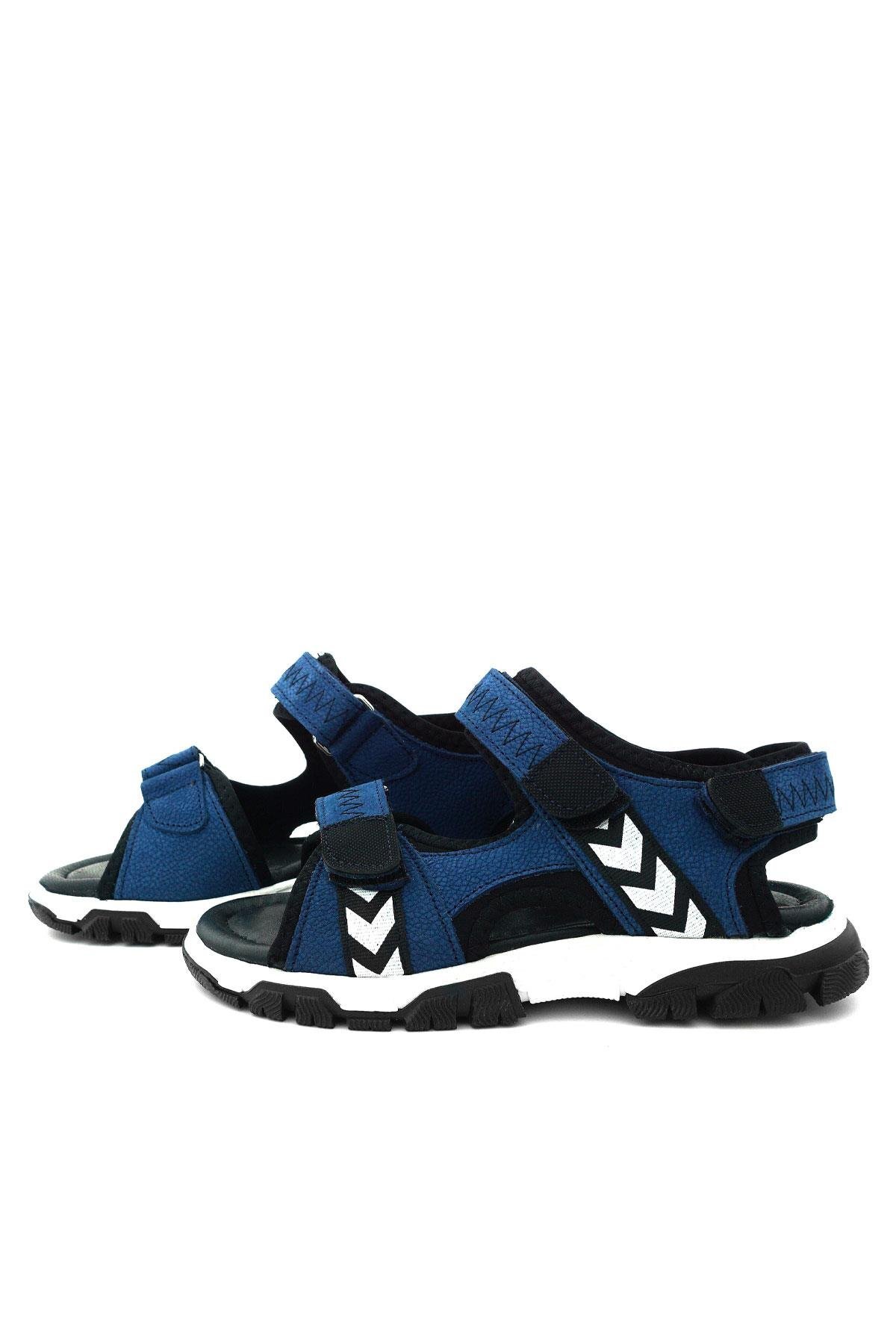 صندل فيلكرو أزرق أسود من الجلد الطبيعي للأولاد