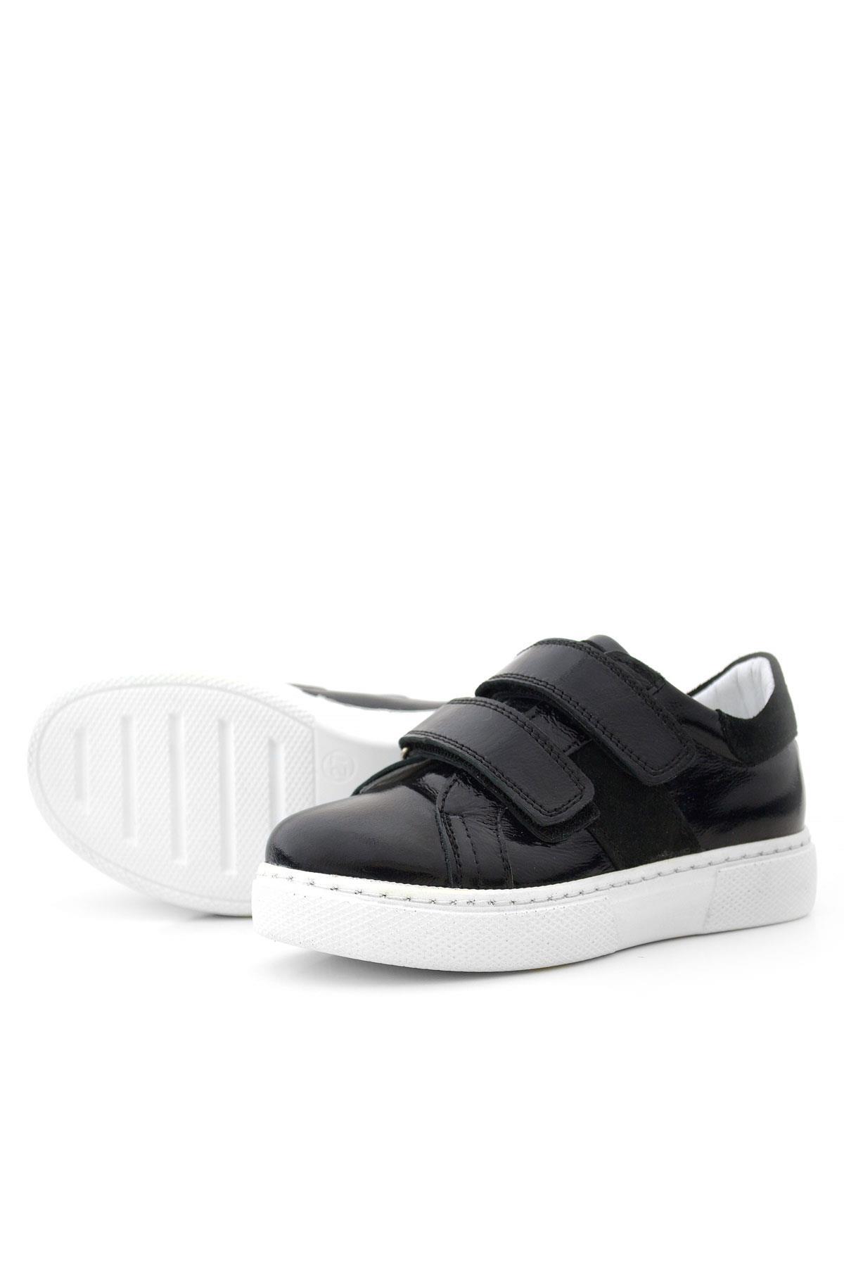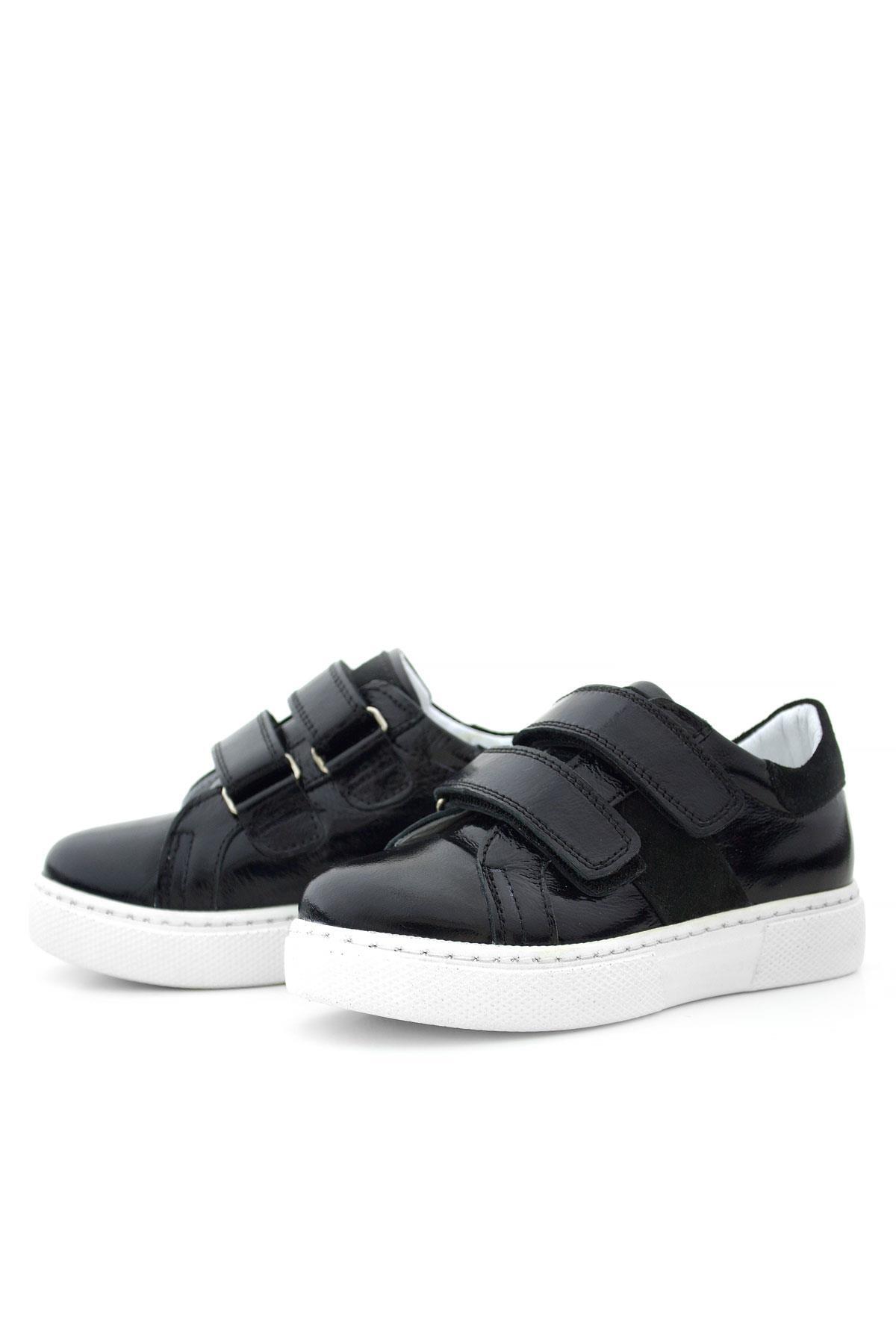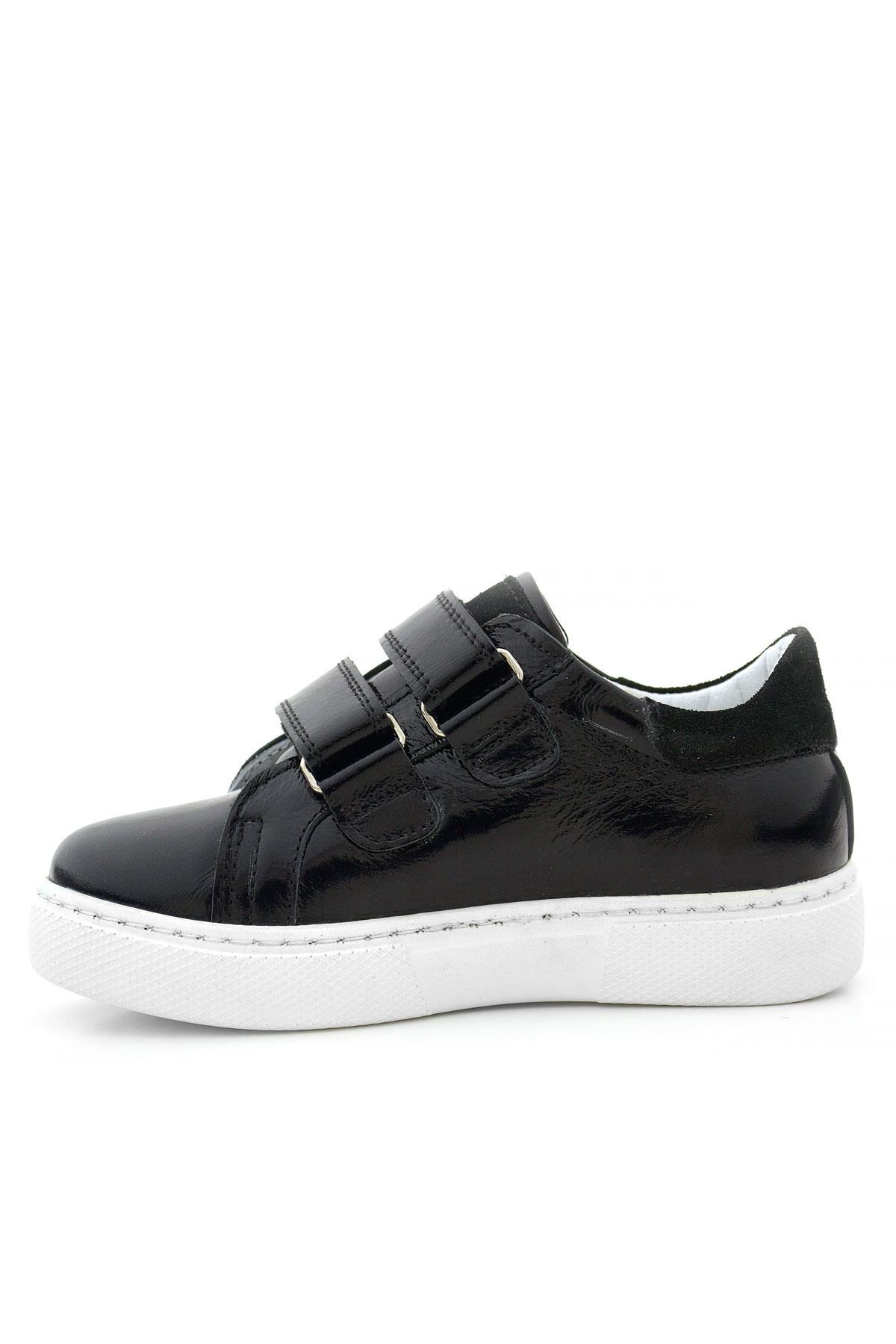 Hakiki Deri Parlak Siyah Cırt Cırtlı Kız Çocuk Spor Ayakkabı
