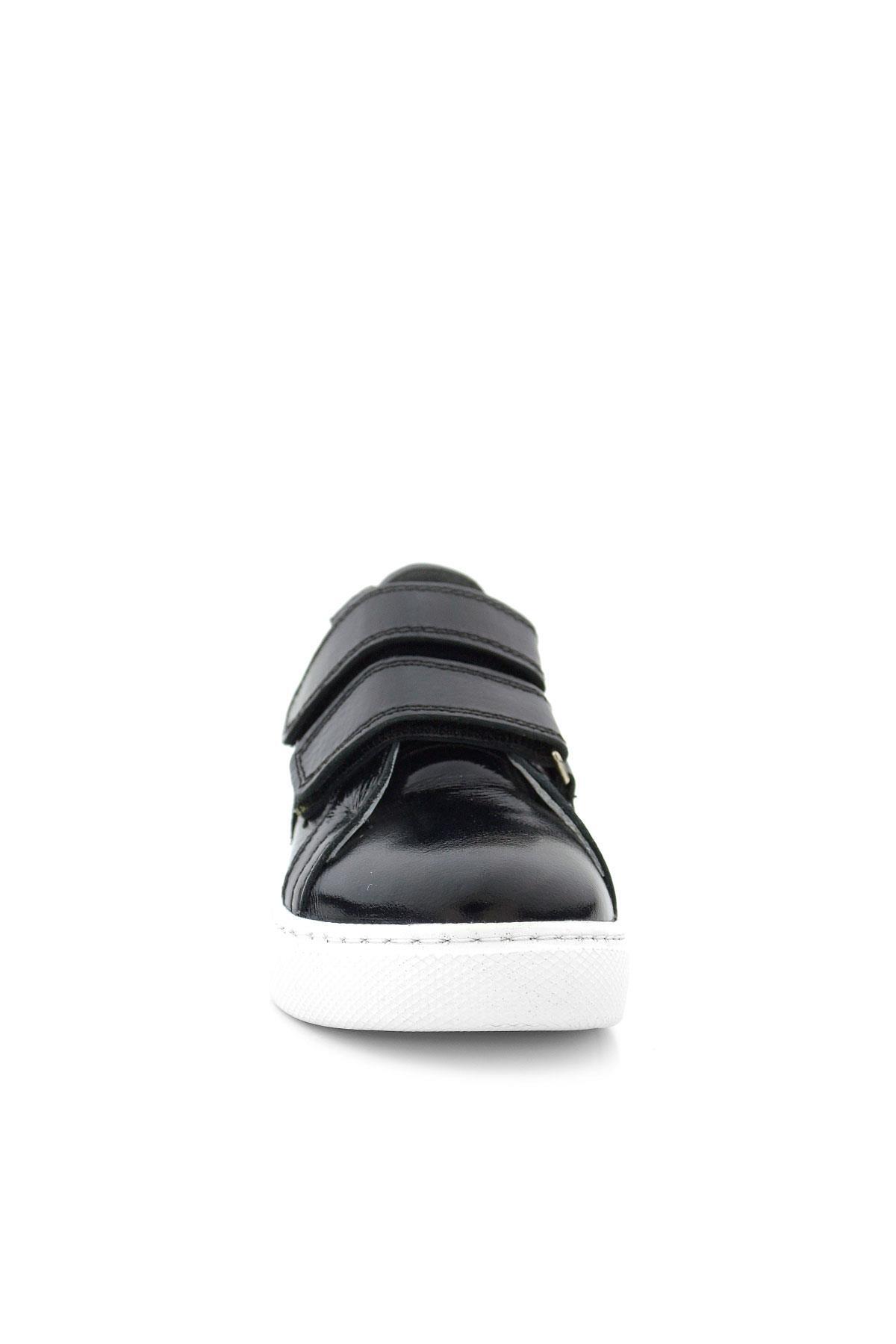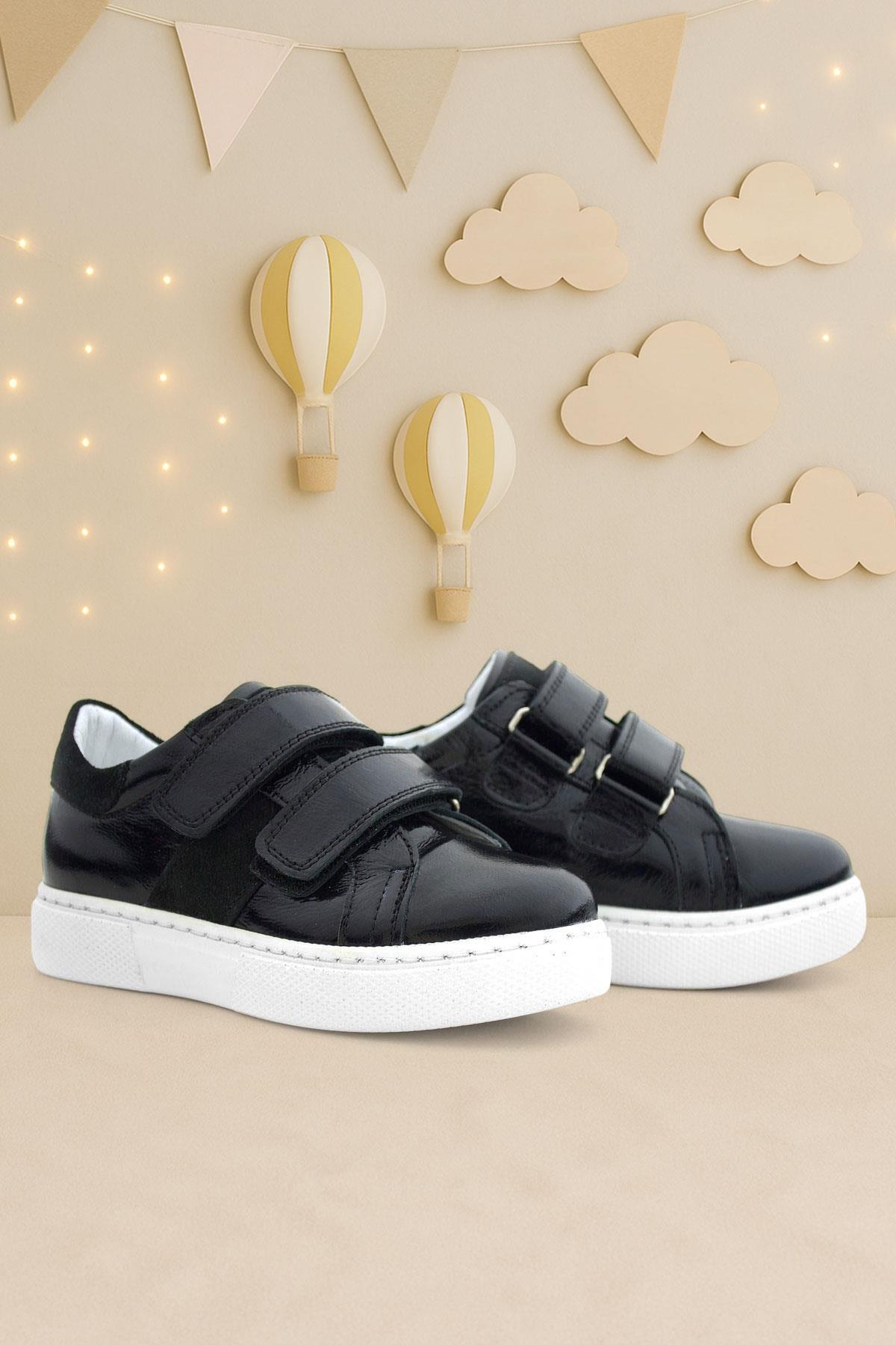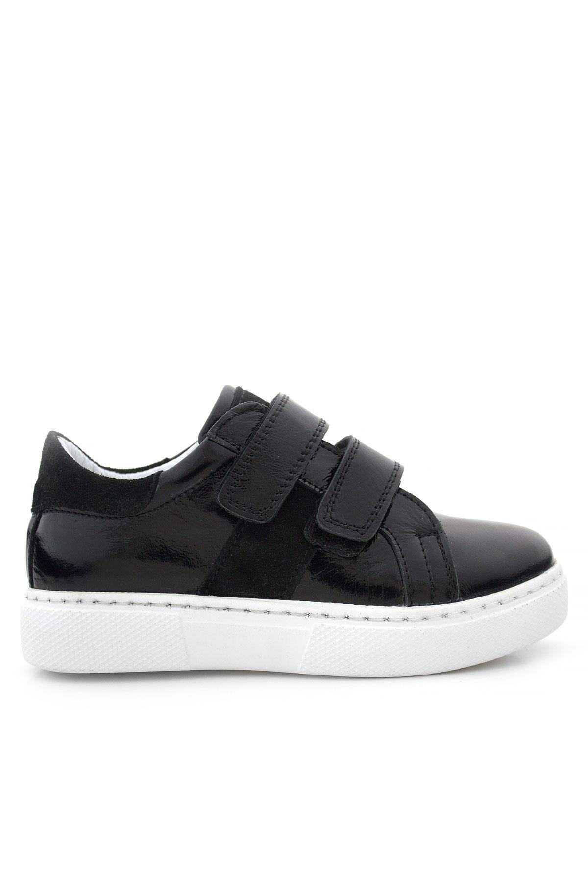 Hakiki Deri Parlak Siyah Cırt Cırtlı Kız Çocuk Spor Ayakkabı