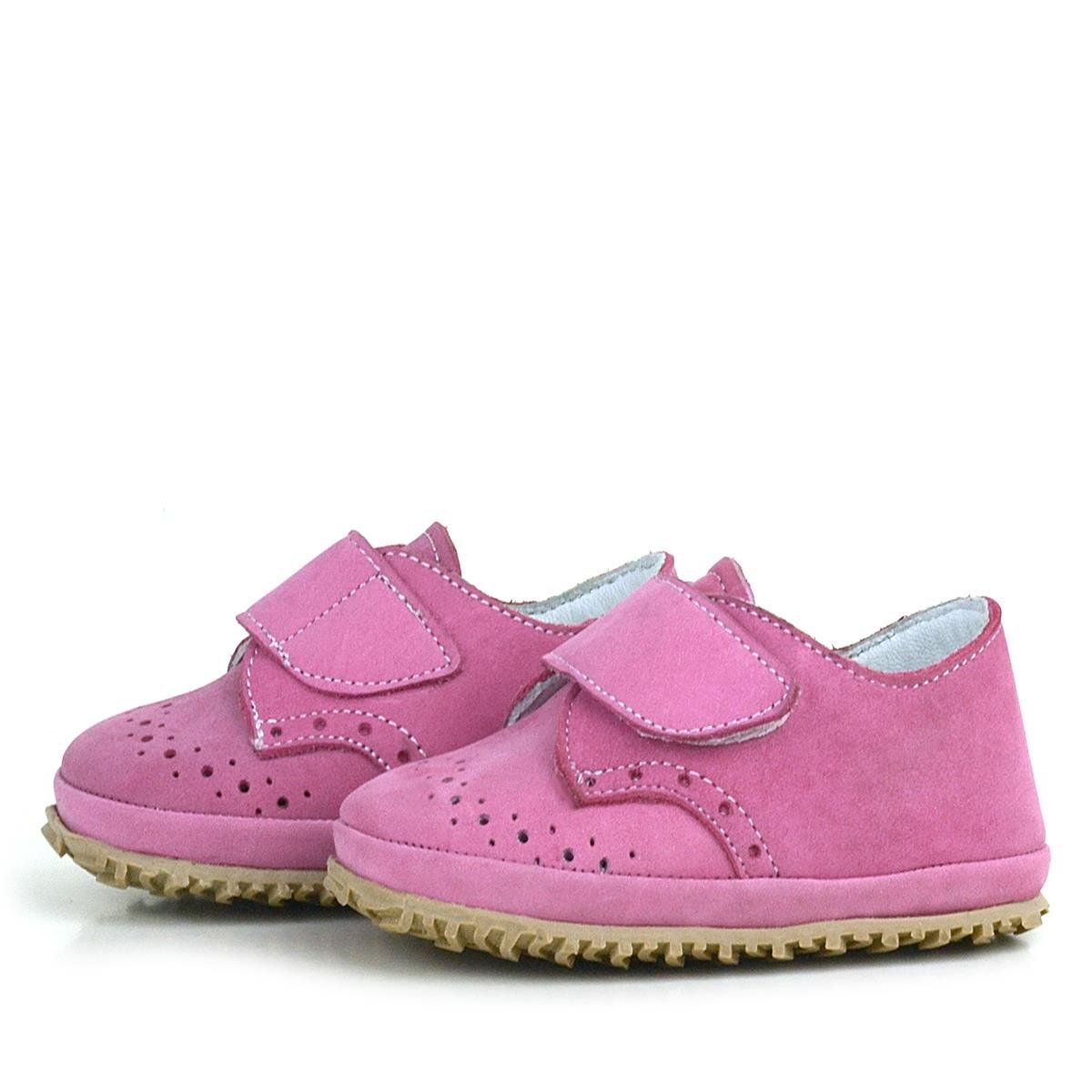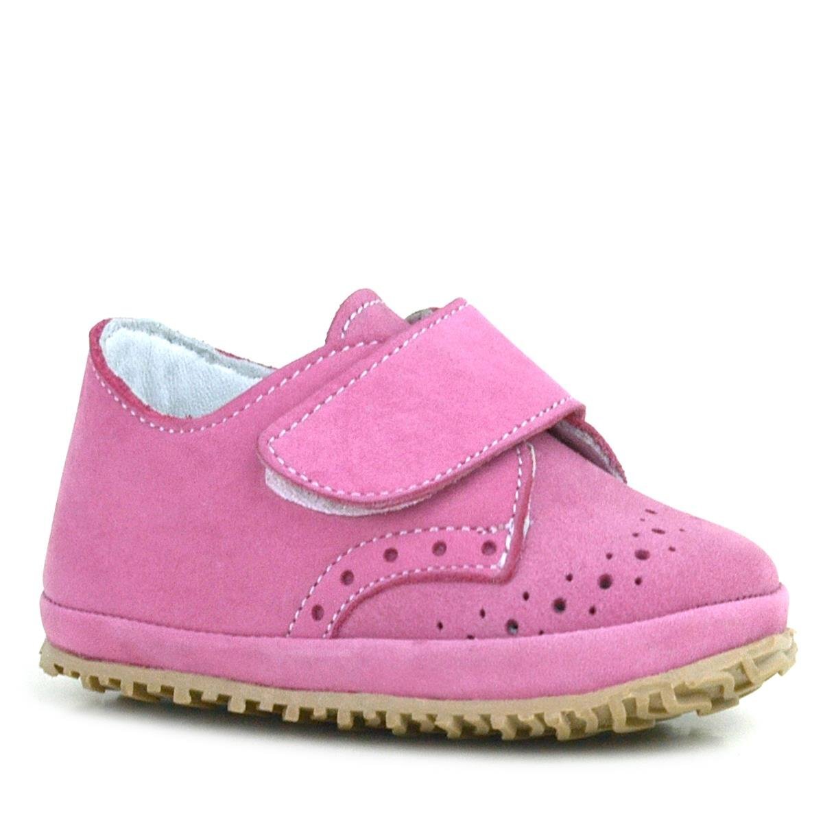 Hakiki Deri Pembe Cırtlı Bebek Patik Ayakkabı