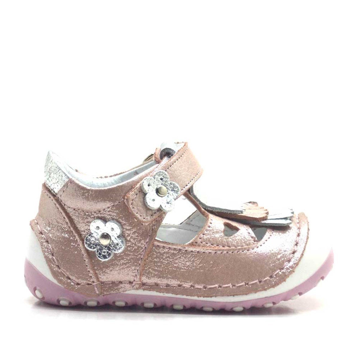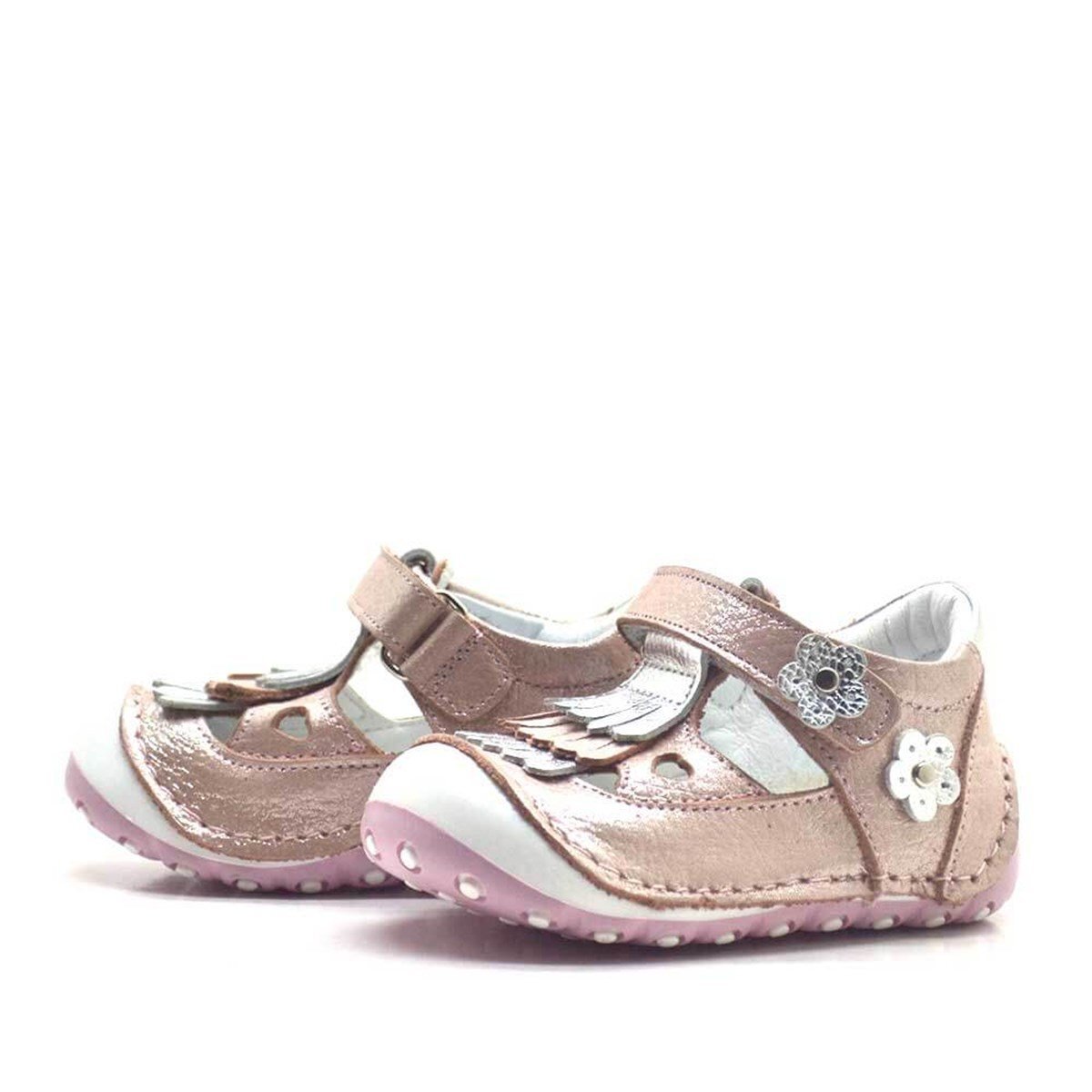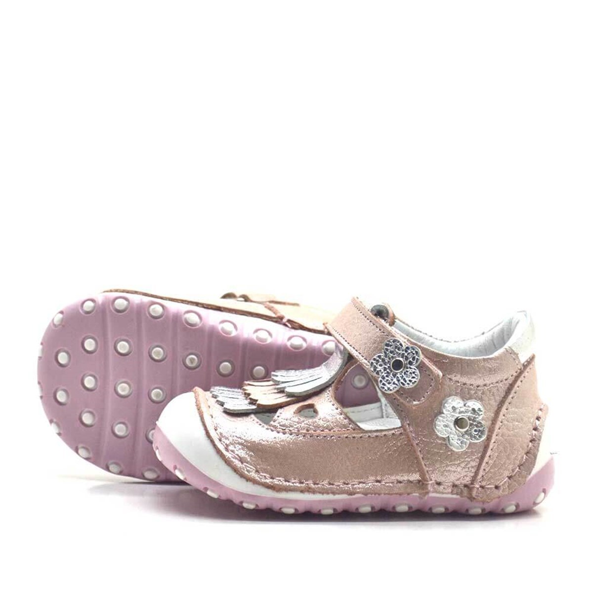 حذاء صيفي من الجلد الطبيعي مزين بشراشيب وردية اللون مع شريط فيلكرو