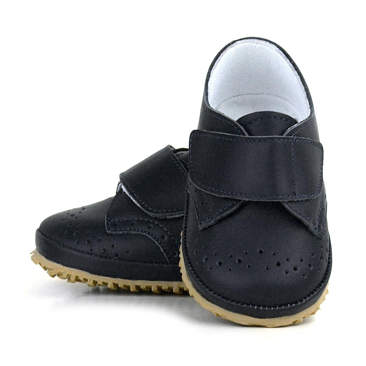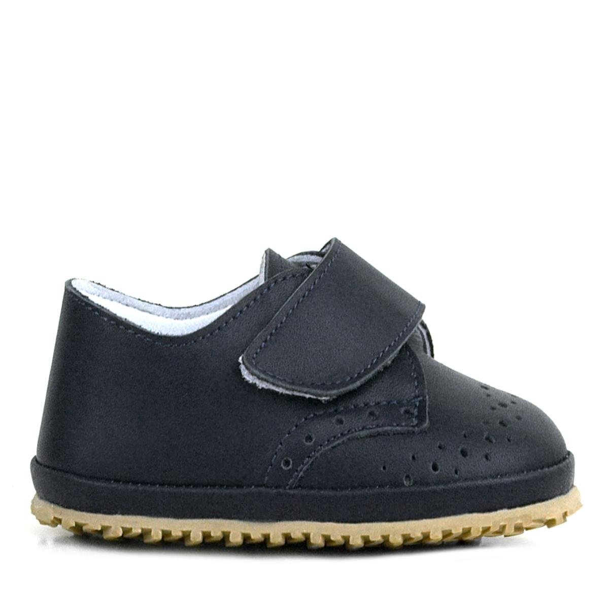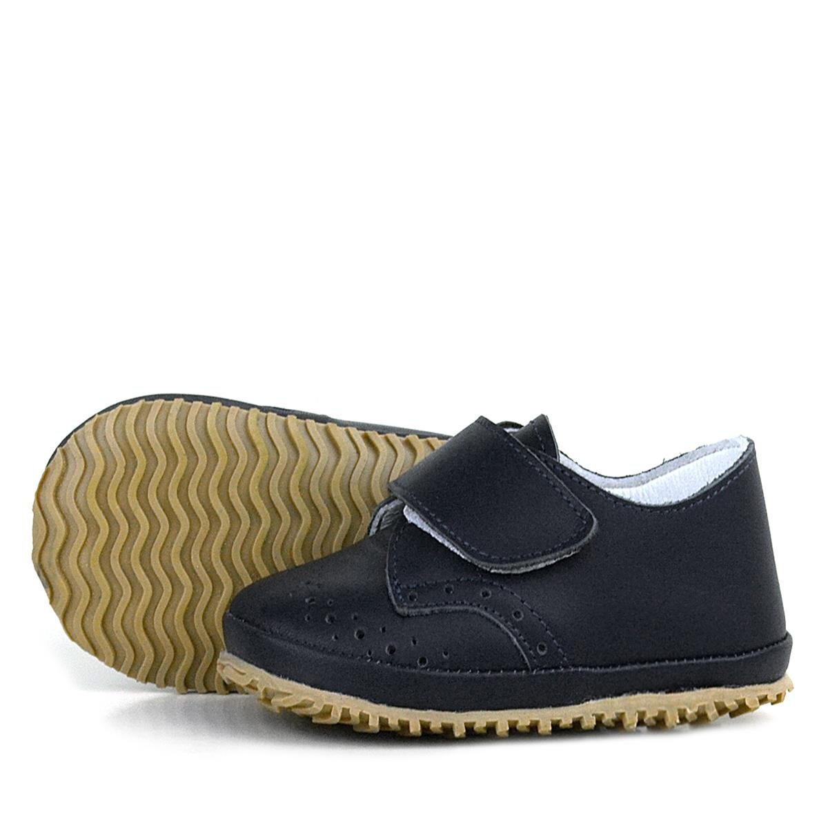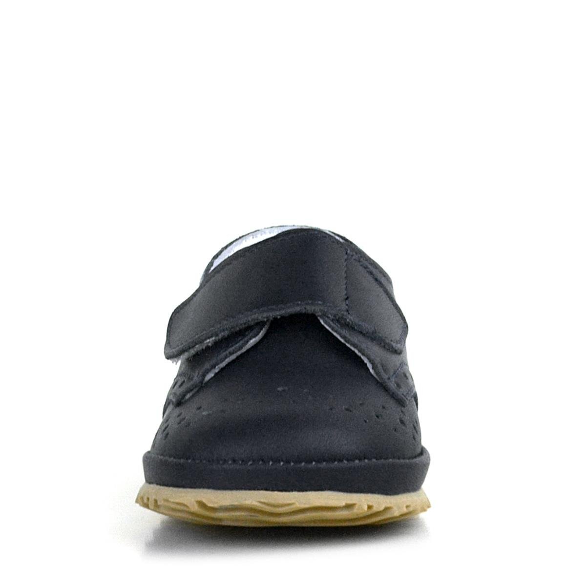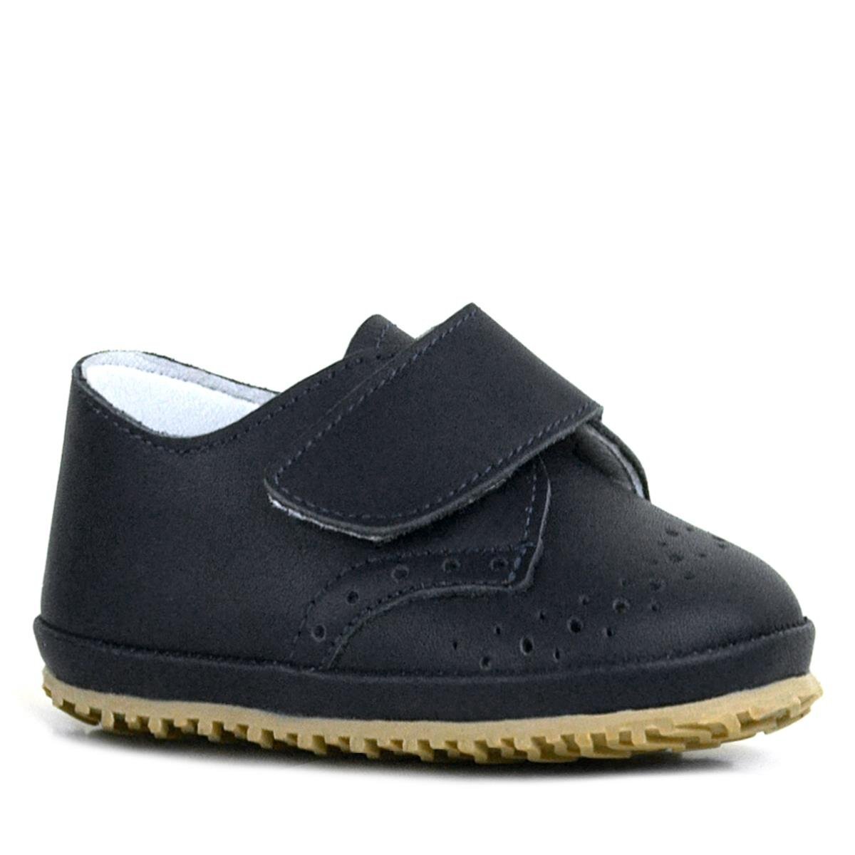 حذاء أطفال من الجلد الطبيعي بشريط فيلكرو أسود