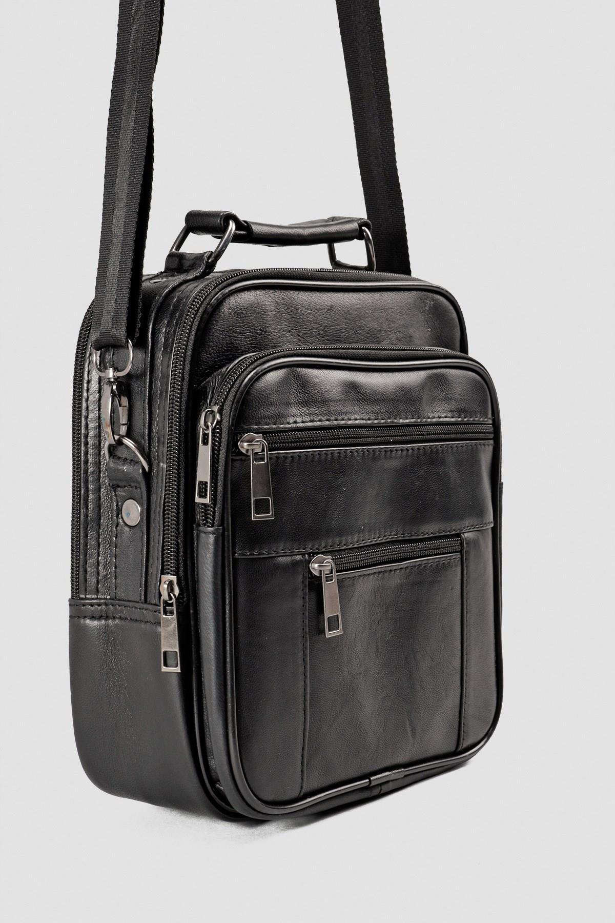 Gelince Haber VerBu şık ve kullanışlı hakiki deri siyah erkek omuz ve el çantası, hem günlük yaşamda hem de iş hayatında tarzınızı tamamlayacak şekilde tasarlanmıştır. %100 hakiki deri malzemesi sayesinde uzun ömürlü ve dayanıklıdır. 25x18x10 cm ölçüleriyle kompakt bir yapıya sahip olmasına rağmen çok gözlü tasarımı sayesinde yüksek saklama kapasitesi sunar. Üstte elde taşıma sapı ve ayarlanabilir omuz askısı ile çift kullanım imkânı sağlar. 2 ana fermuarlı bölme, ön tarafta 2 fermuarlı cep ve arka tarafta 1 fermuarlı cep ile eşyalarınızı düzenli bir şekilde taşıyabilirsiniz. Şık görünümü, sağlam dikişleri ve kaliteli metal fermuar detayları ile iş, seyahat ve günlük kullanım için idealdir.