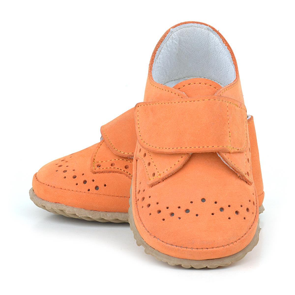 Hakiki Deri Turuncu Cırtlı Bebek Patik Ayakkabı