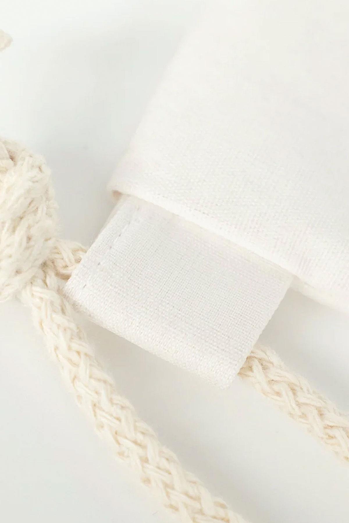 - İp Detayı: Kalın ve dayanıklı pamuk ip, omuzda rahat taşıma için uygun