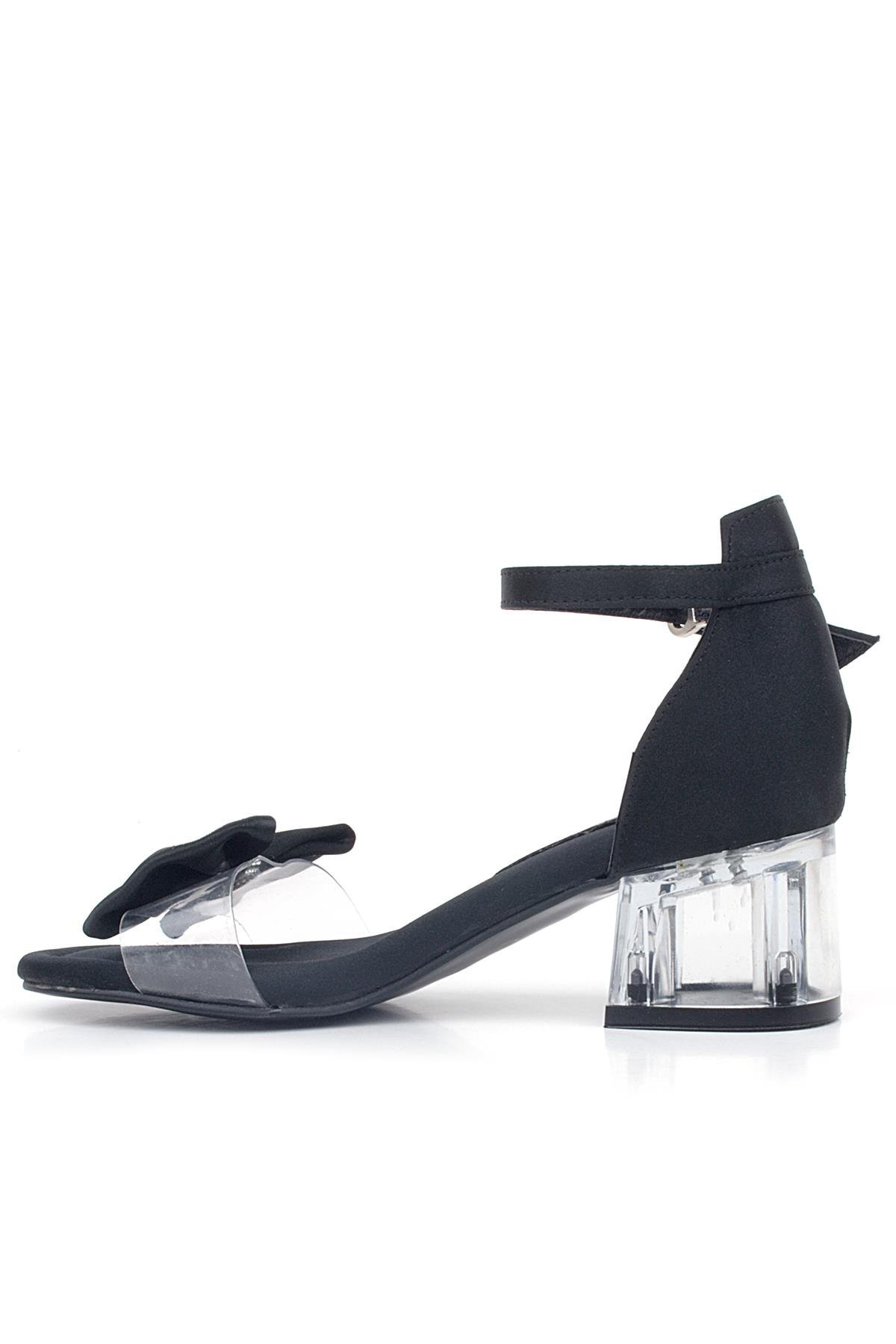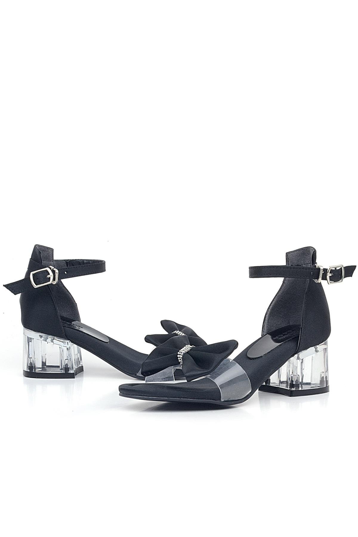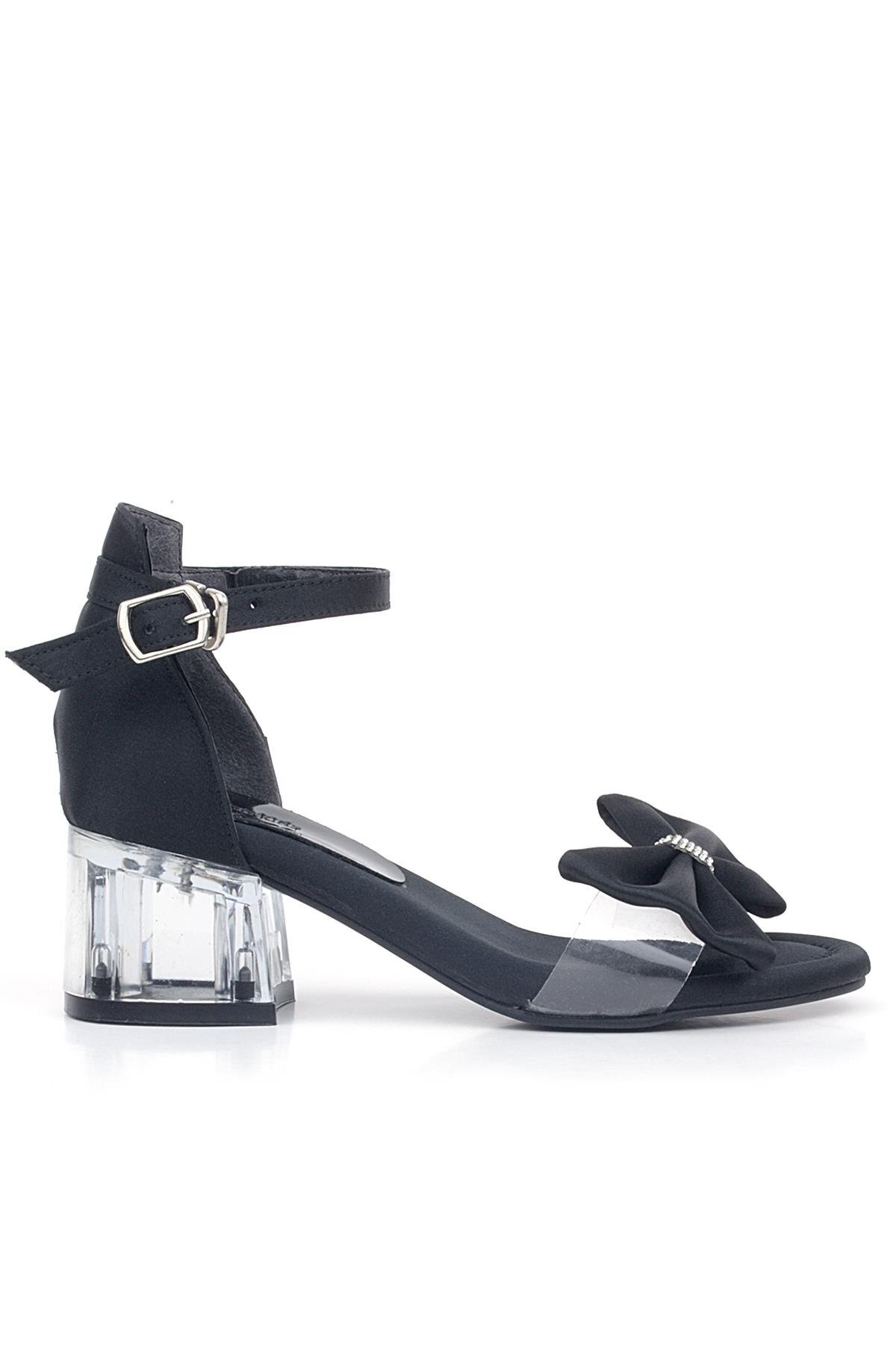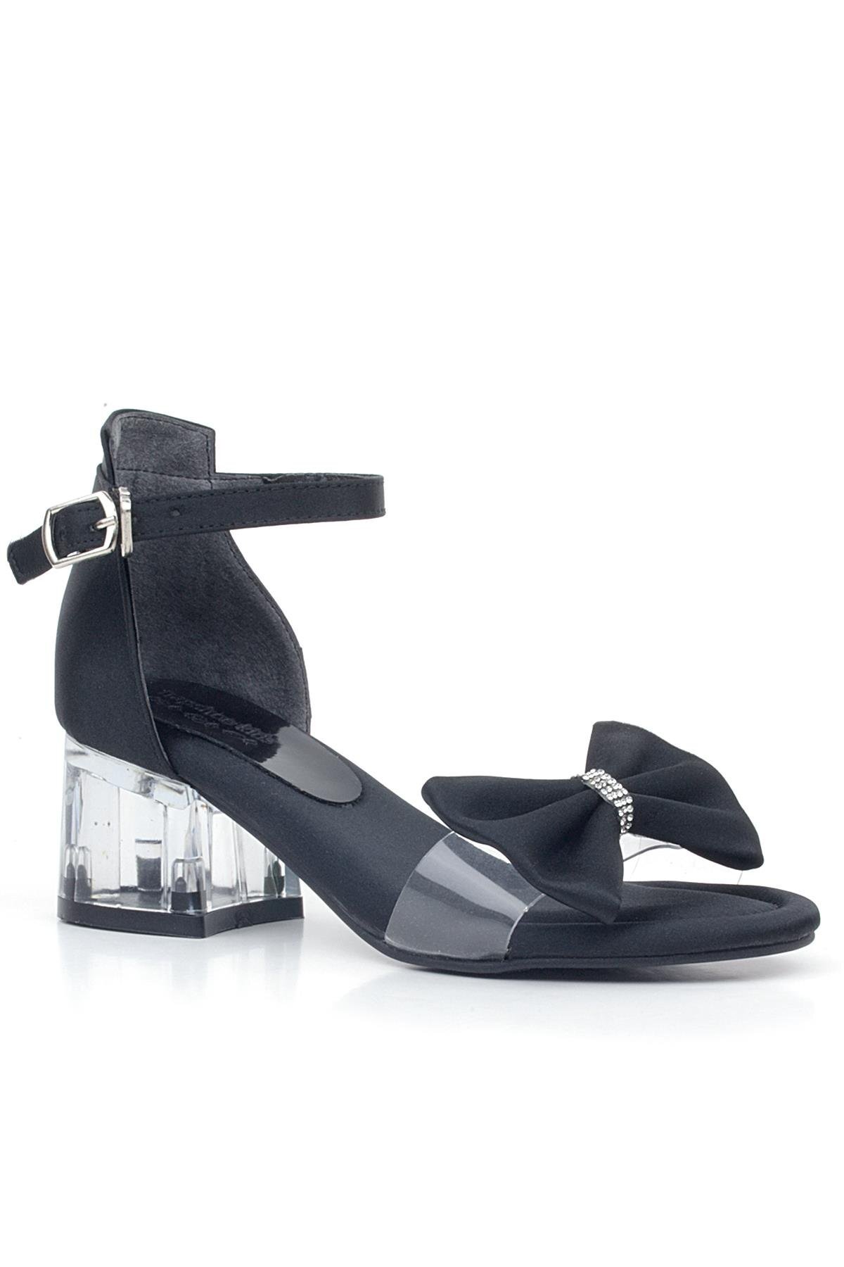 حذاء جيسي بكعب عالٍ مزين بشريط ساتان أسود للبنات
